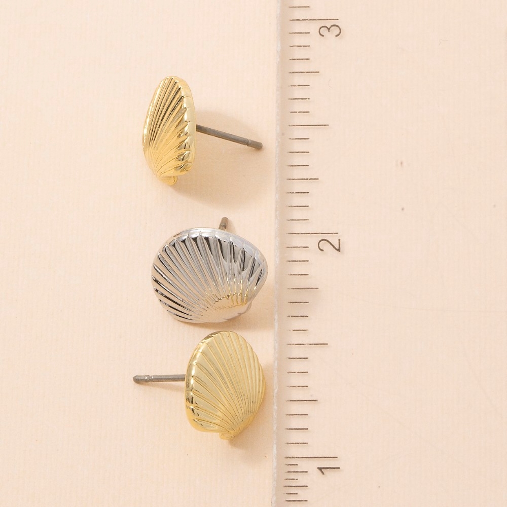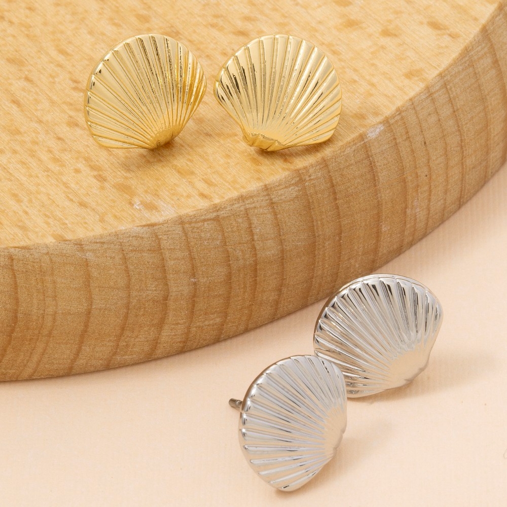 • A piece that will never go out of style, this pair of stud earrings boasts a magnificent gold dipped sea shell design. This versatile pair of stud earrings adds a touch of elegance to any outfit. Available in GOLD, 2SILVER. This item is sold in packs of 1.