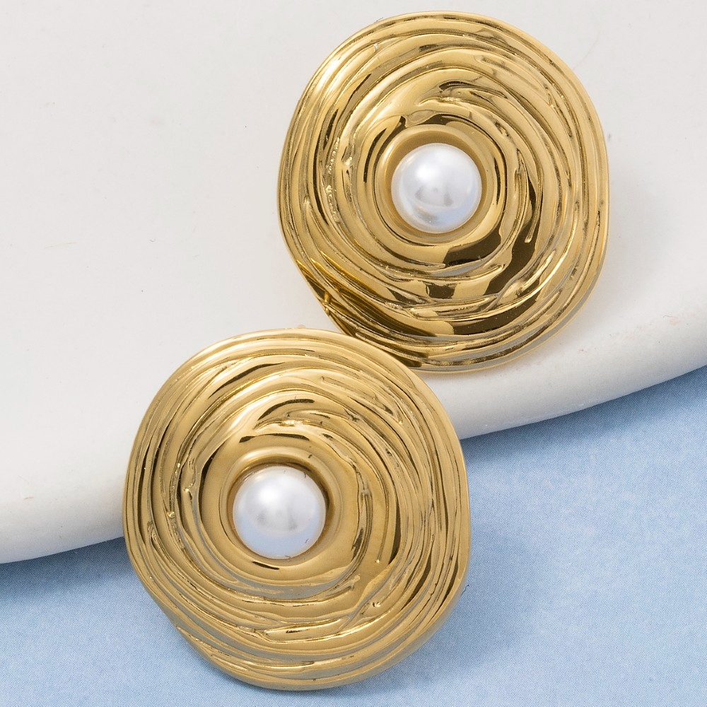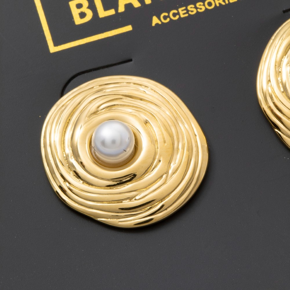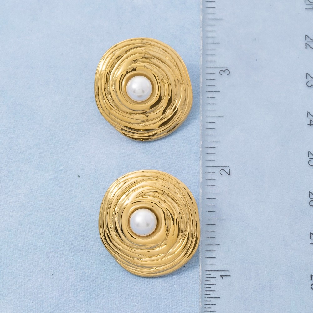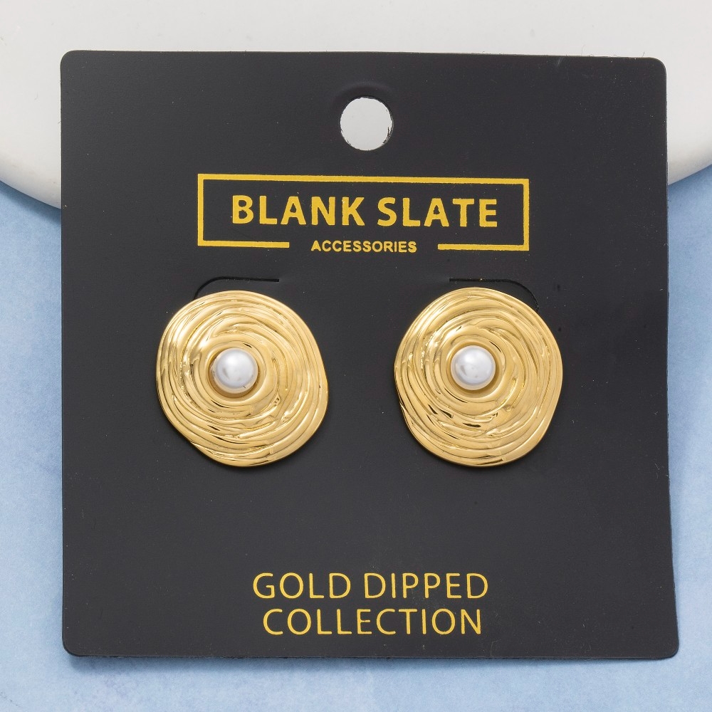 • This piece is both elegant and versatile, this pair of stud earrings includes a stunning gold dipped swirl disc pearl center design. Discover the magic of accessorizing with this versatile pair of stud earrings, effortlessly upgrading the style quotient of any outfit. Available in G. This item is sold in packs of 1.