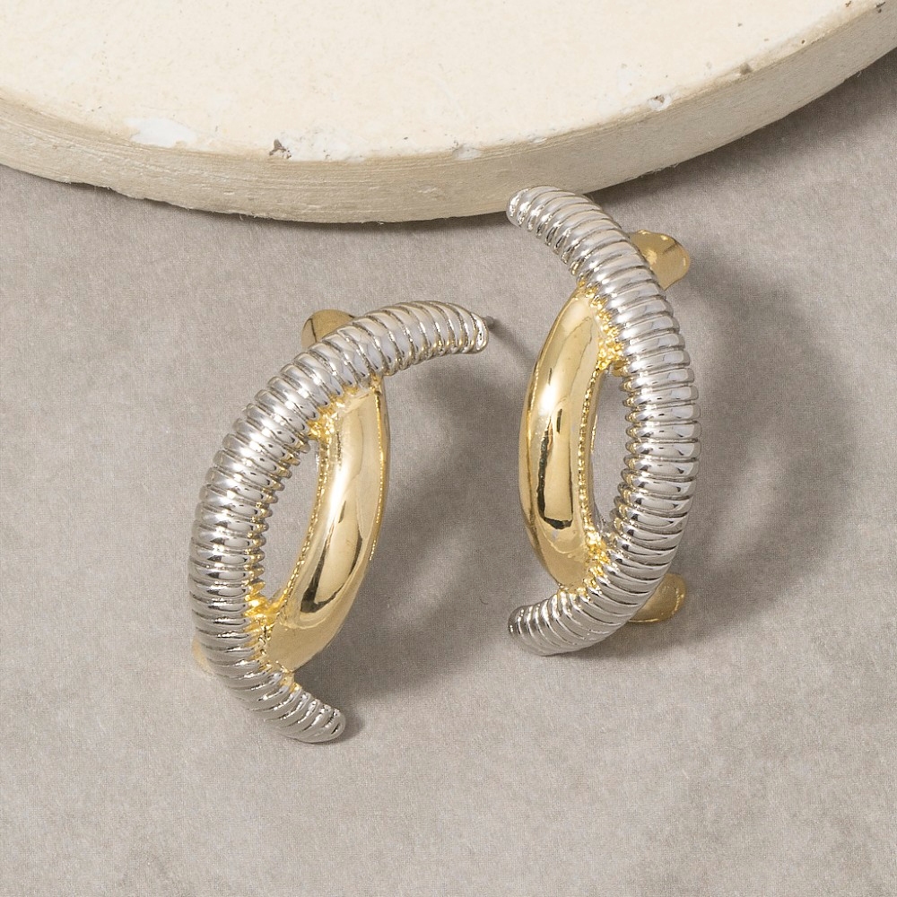 Gold Dipped Two Tone Knot Weave Stud Earrings