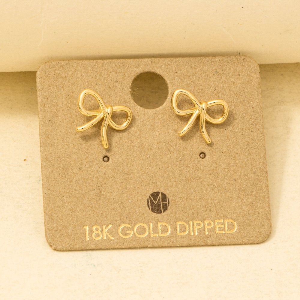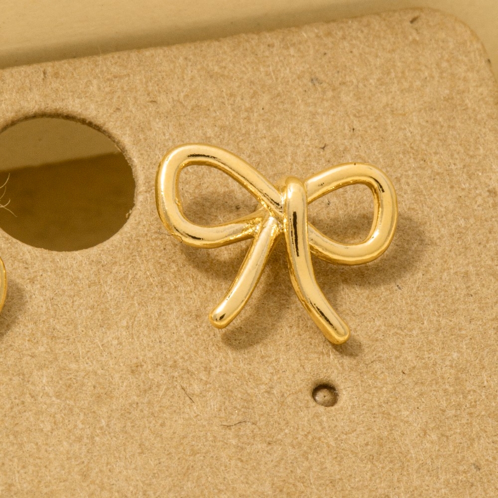 Effortlessly chic and always on-trend, this trending pair of earrings embodies a sophisticated gold dipped wire ribbon bow stud earrings design. Elevate your fashion statement with this versatile trending pair of earrings, adding a touch of glamour to your everyday look. Available in G, S. This item is sold in packs of 1.