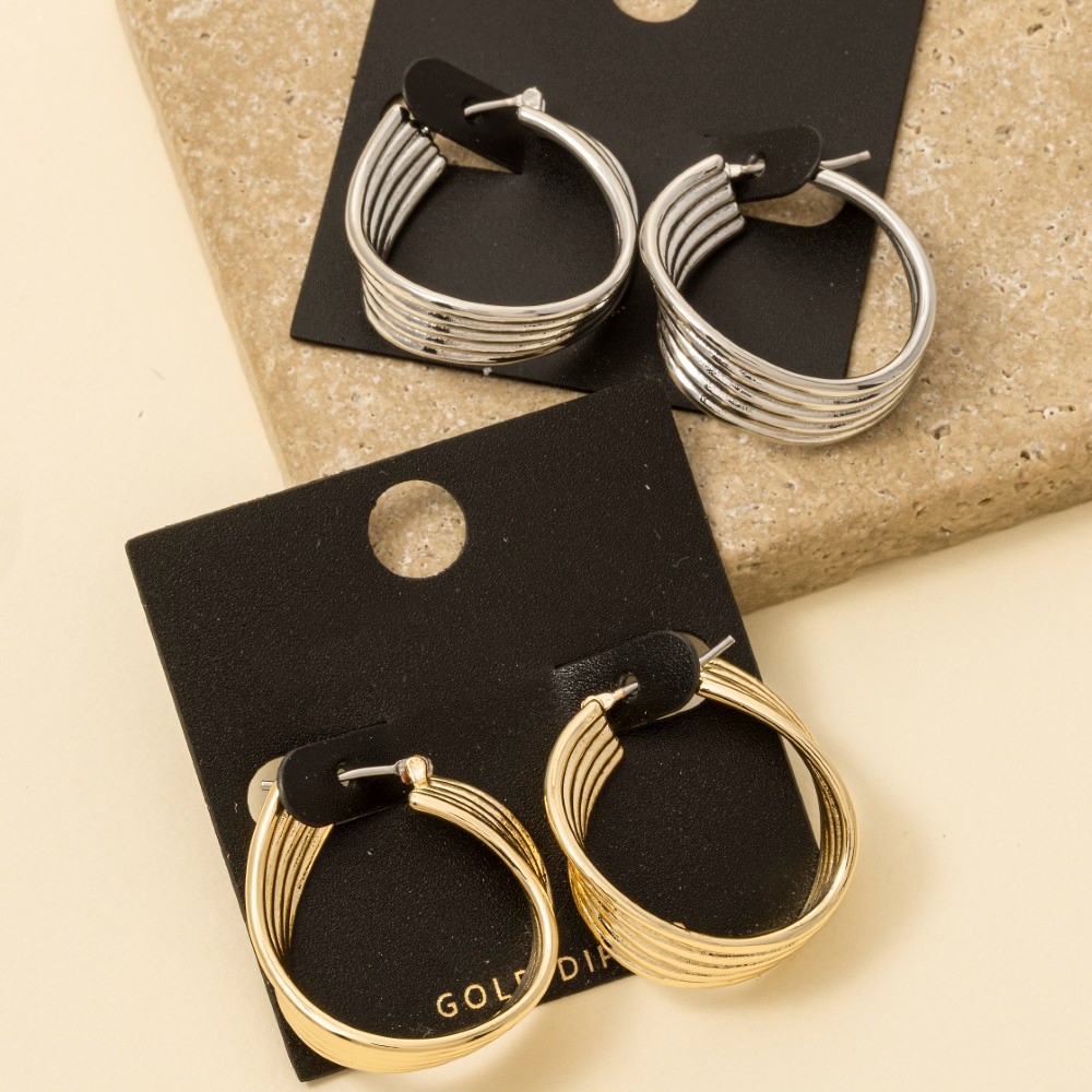 • Make a bold statement, this pair of hoop earrings shows off a distinctive gold dipped 5 row layered wavy design. Infuse elegance into your daily wardrobe with the versatile charm of this must-have pair of hoop earrings. Available in GOLD, 2SILVER. This item is sold in packs of 1.