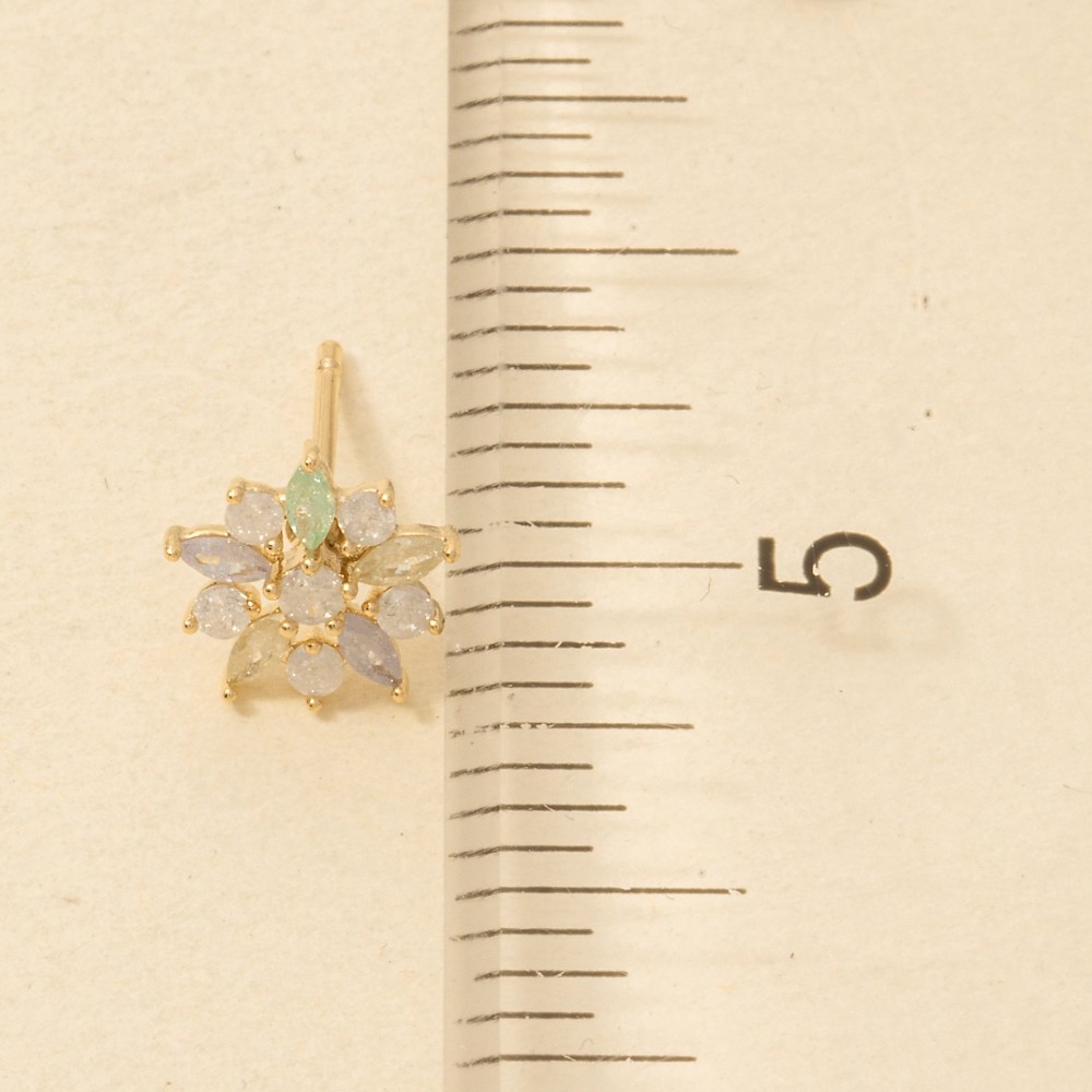 - This piece is perfect for those who want to showcase their unique style, this pair of stud earrings shows off a distinctive gold dipped cubic zirconia flower design. Unleash the potential of your wardrobe with this versatile pair of stud earrings, ensuring a touch of elegance in every ensemble. Available in G. This item is sold in packs of 1.