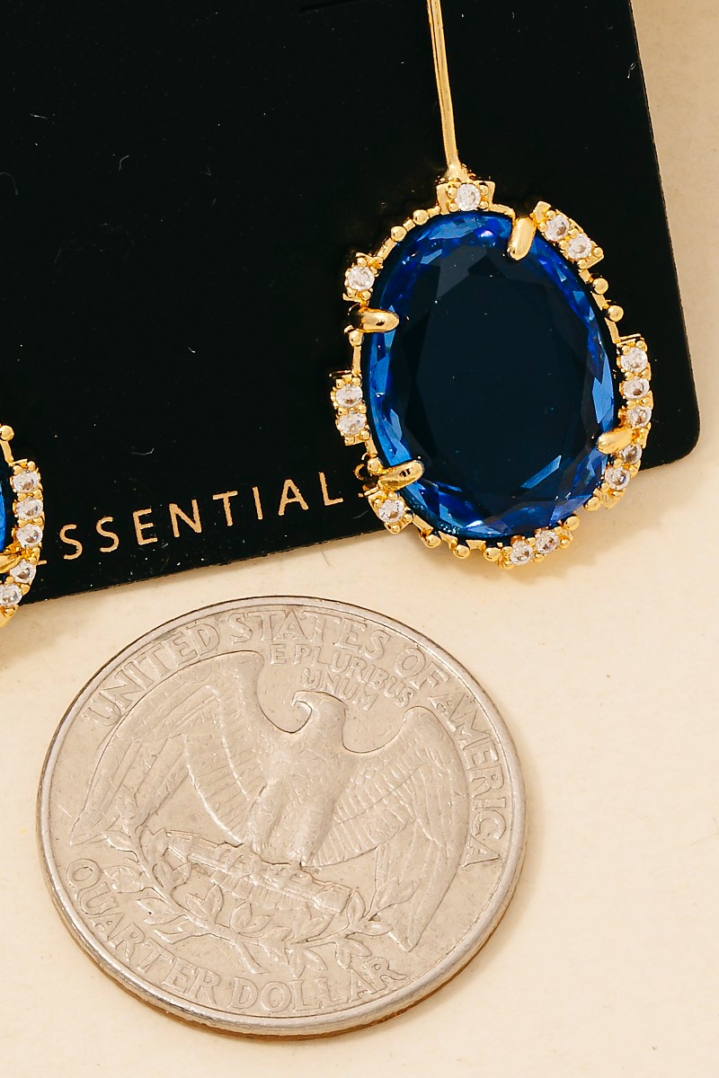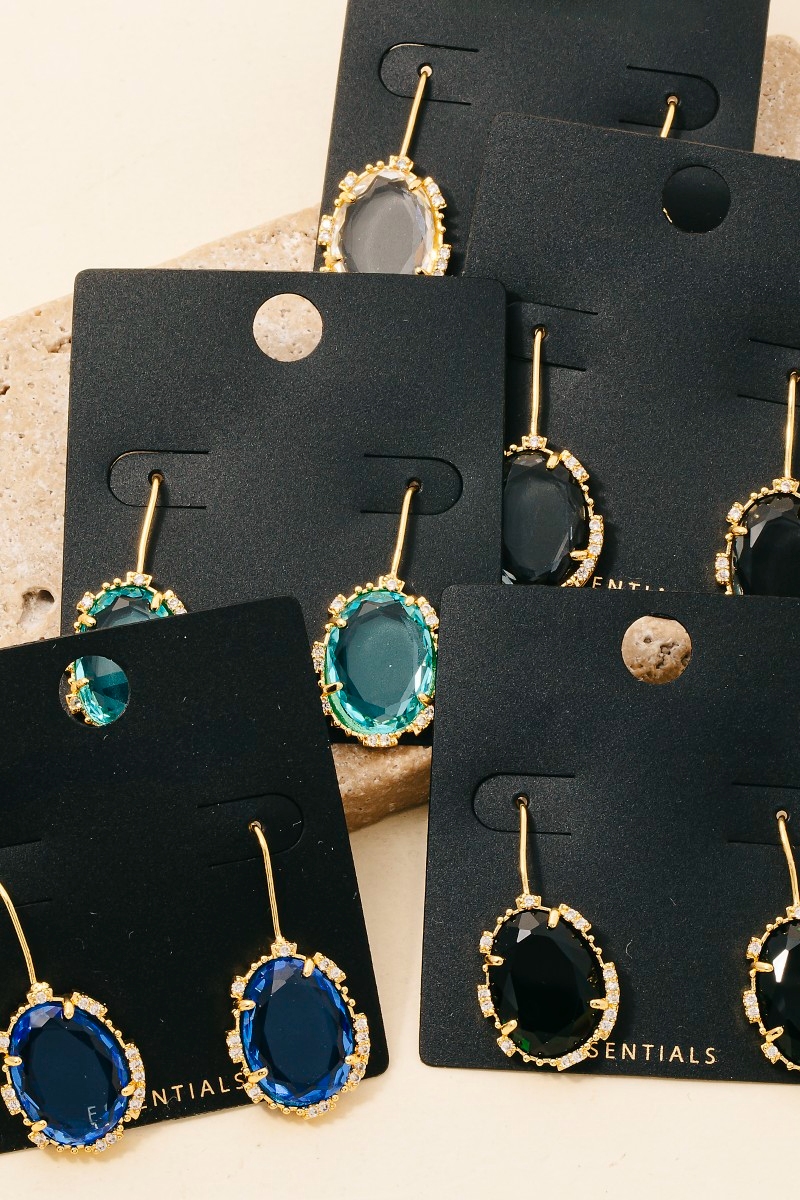This pair of dangle earrings brings a unique gold dipped cubic zirconia and glass oval gem style. Experience refined sophistication with this understated yet stylish piece.
