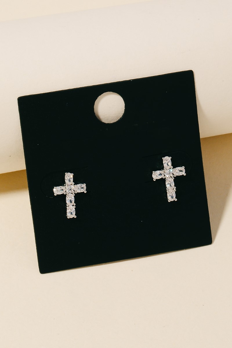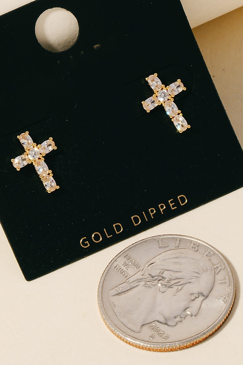 This pair of stud earrings showcases a timeless gold dipped cz studded cross style. Celebrate individual style with this versatile, eye-catching addition.