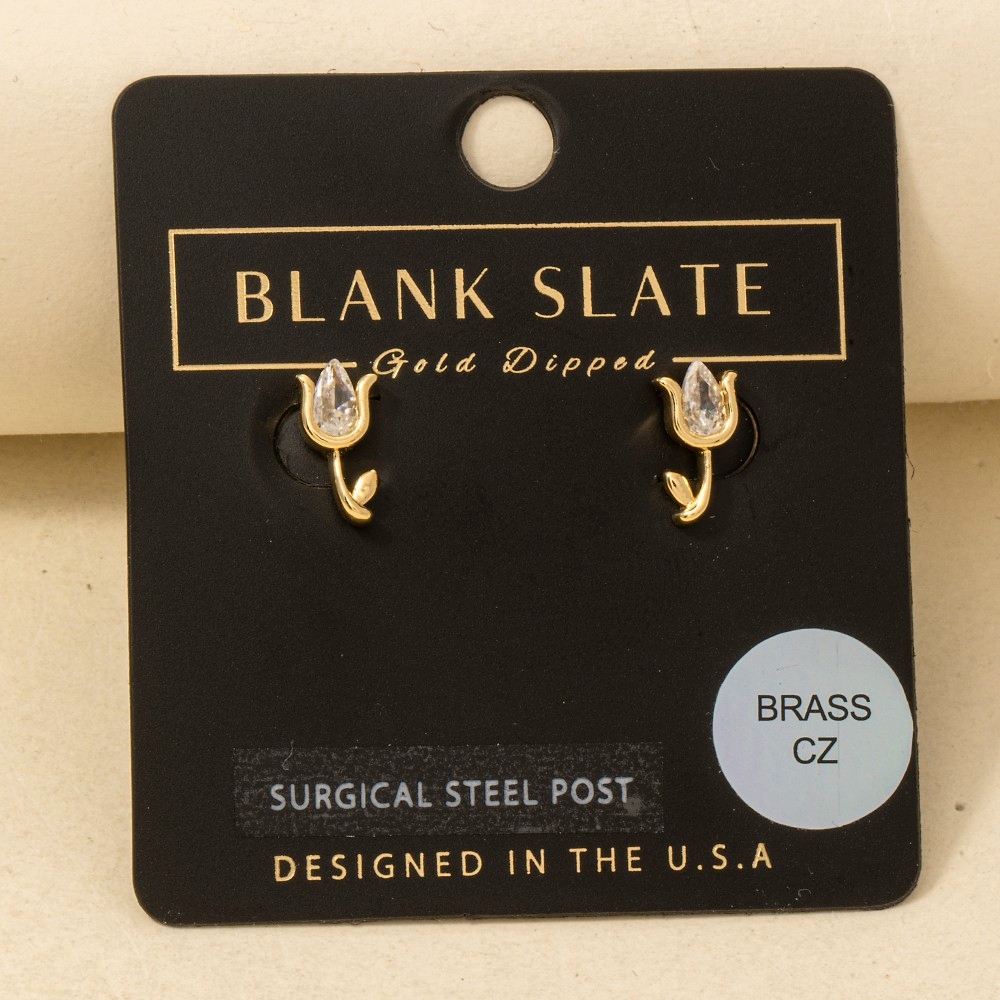 • Perfect for any occasion, this pair of stud earrings highlights a special gold dipped cubic zirconia teardrop tulip design. Add a touch of glamour to your wardrobe with this versatile pair of stud earrings, perfect for enhancing the elegance of any look. Available in G, S. This item is sold in packs of 1.