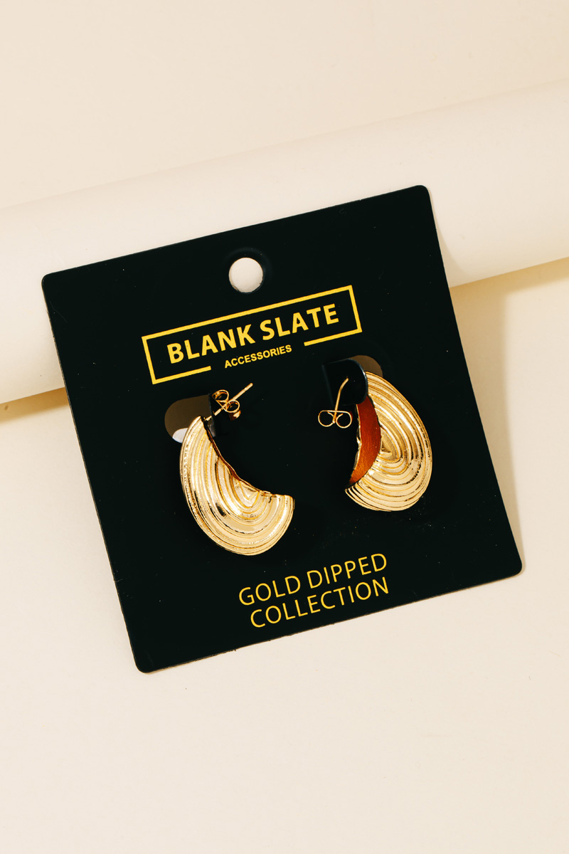 This pair of drop earrings showcases a timeless gold dipped half oval style. Indulge in the allure of exquisite craftsmanship as this pair of drop earrings effortlessly adds a touch of luxury to your attire.