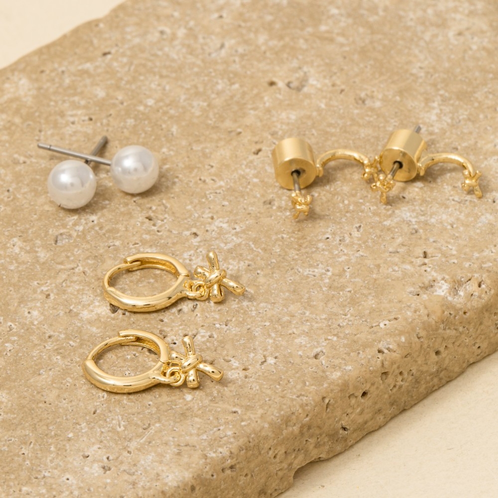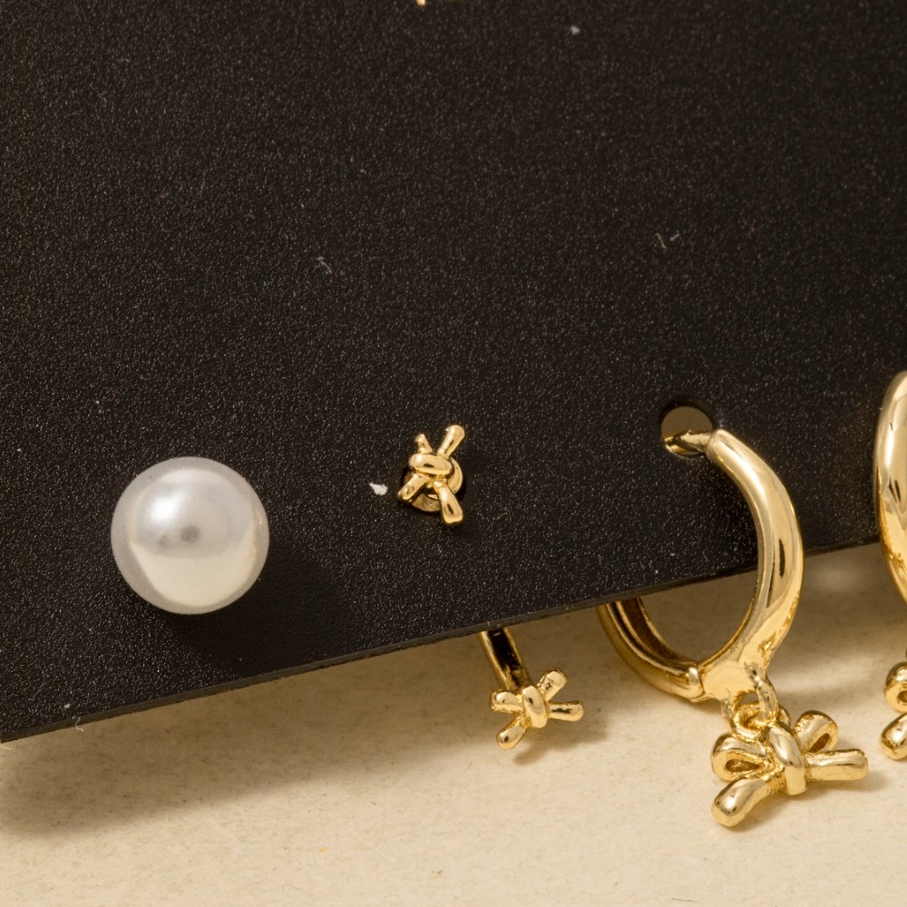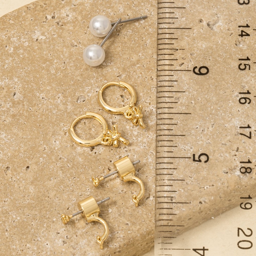 • Perfect for any fashion-forward individual, this pair of earrings possesses a fine gold dipped hoops and pearl studs set design. This item is the perfect way to add some texture and interest to any outfit. Available in GOLD. This item is sold in packs of 1.