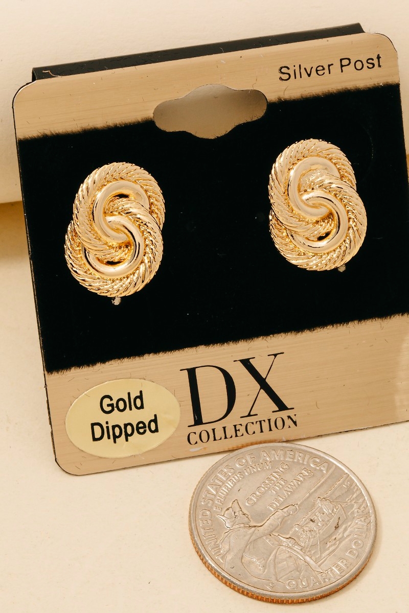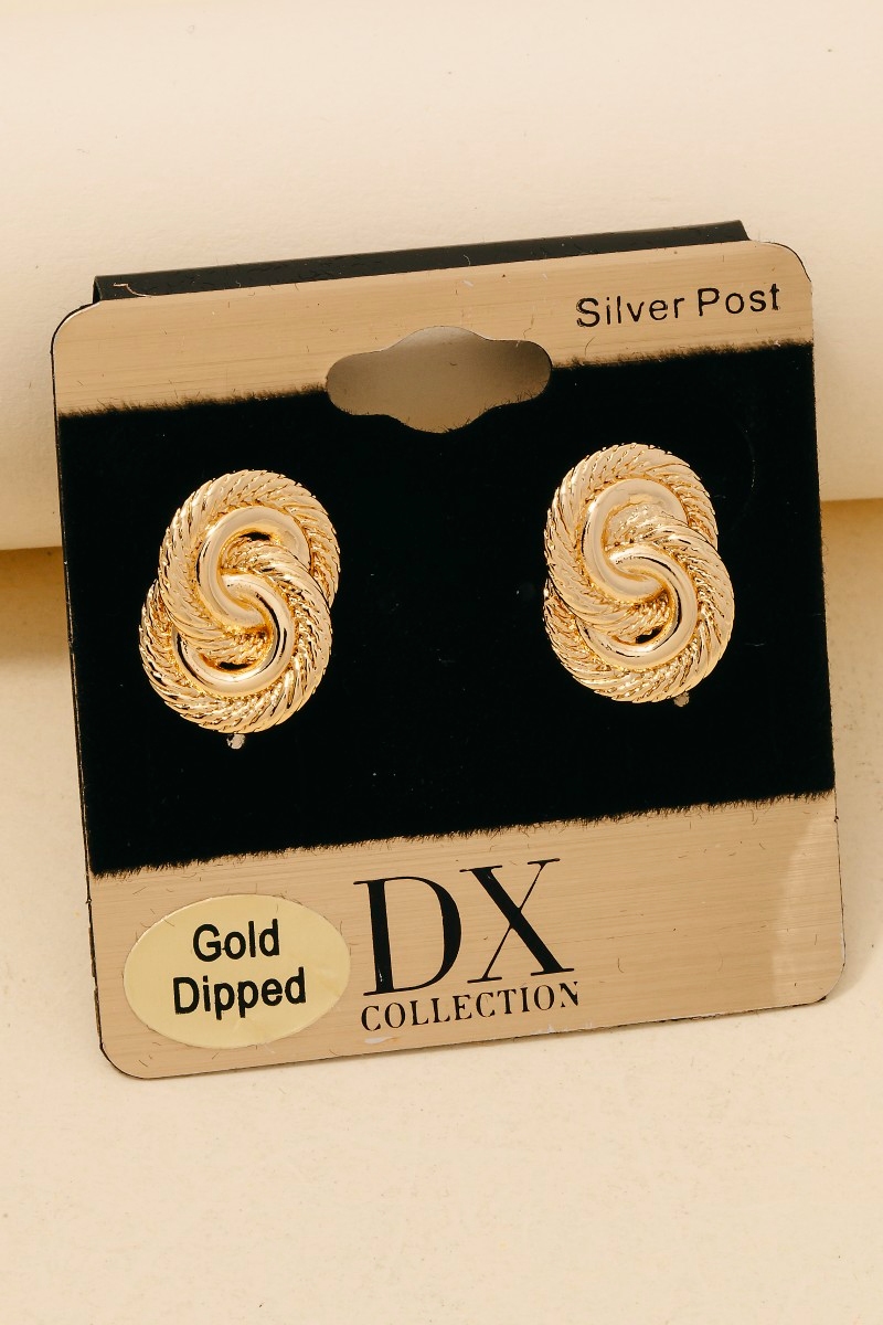 • This pair of stud earrings introduces a stunning gold dipped intricate interlinked hoops style. Experience the joy of accessorizing with this piece that effortlessly combines versatility and charm.