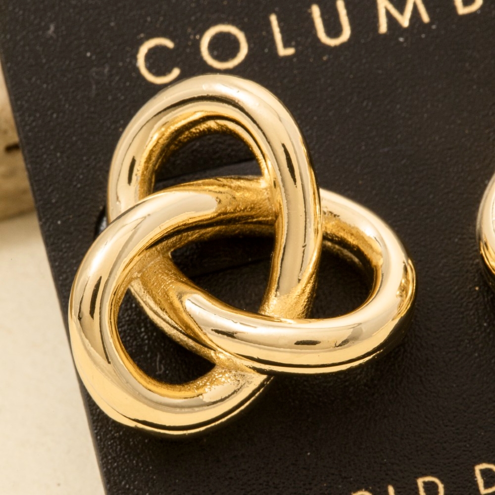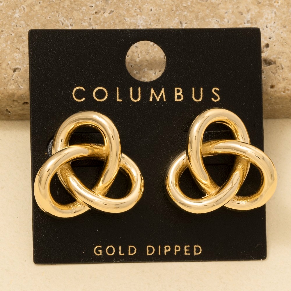 - Add some edge to your wardrobe, this pair of stud earrings offers a remarkable gold dipped intricate knot design. This item is the perfect way to add some texture and interest to any outfit. Available in GOLD. This item is sold in packs of 1.