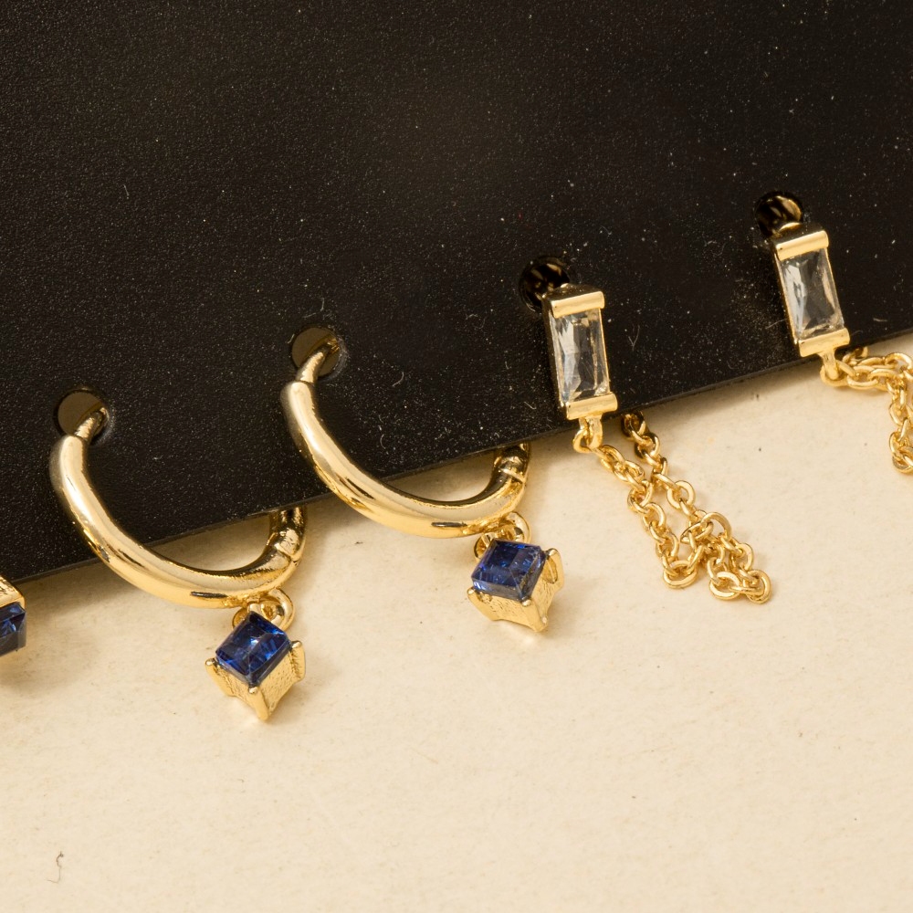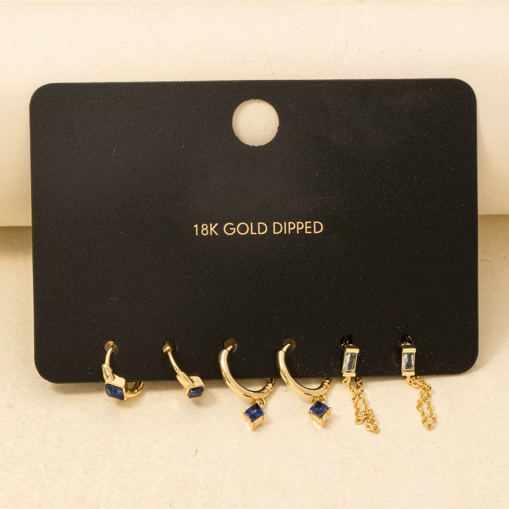 • A versatile piece that can be dressed up or down, this pair of earrings encompasses a grand gold dipped mixed blue cubic zirconia gems set design. This item is a great way to add some texture and dimension to any outfit. Available in 2. This item is sold in packs of 1.
