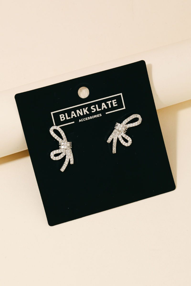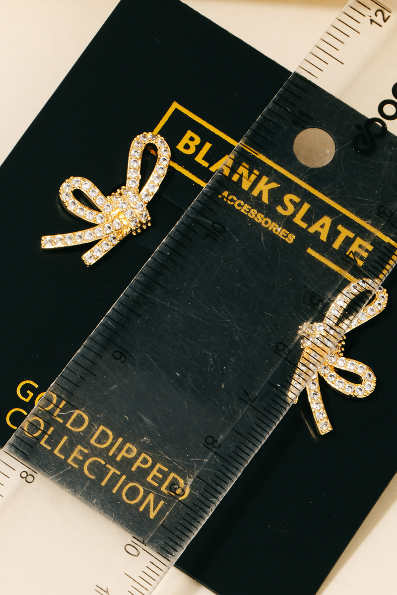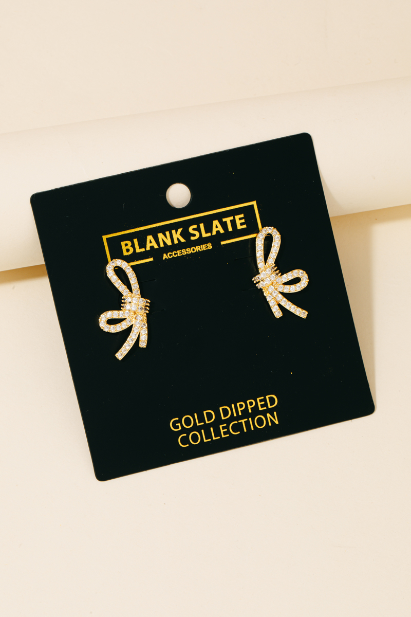 Gold Dipped Cz Pave Bow Ribbon Stud Earrings