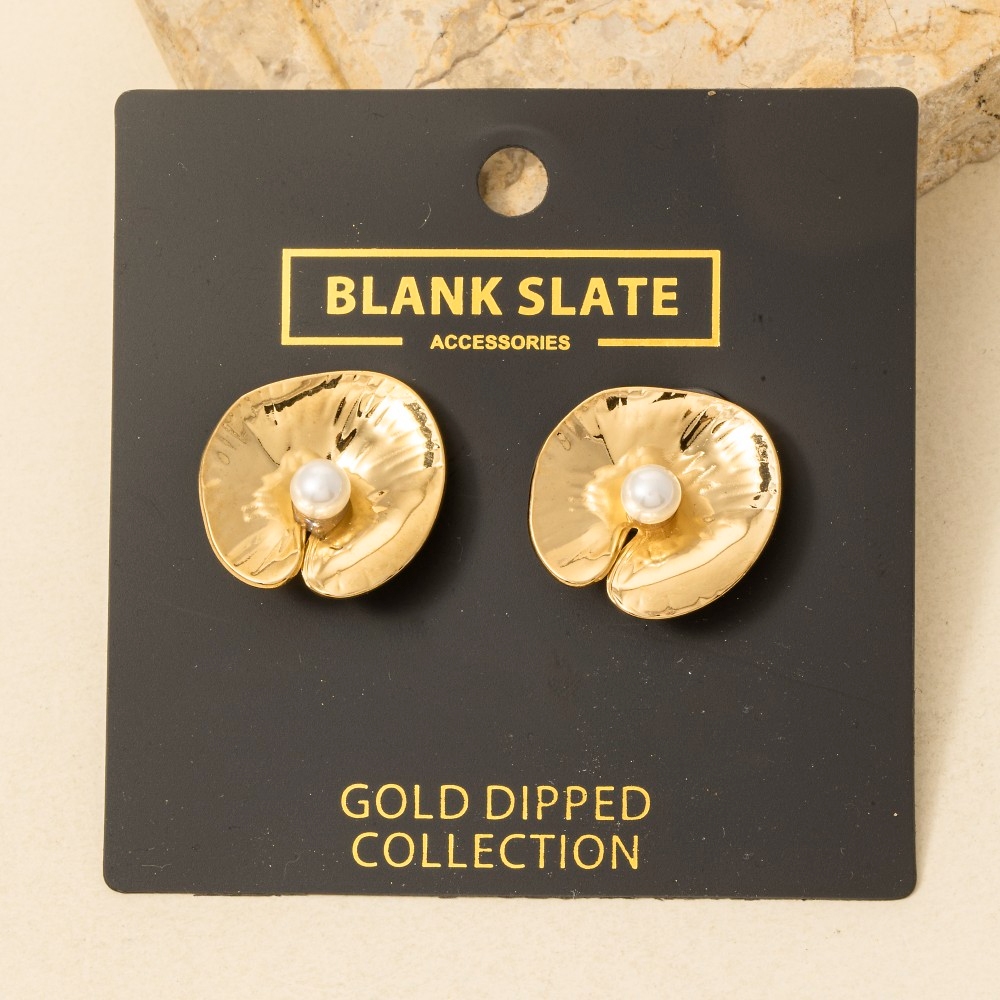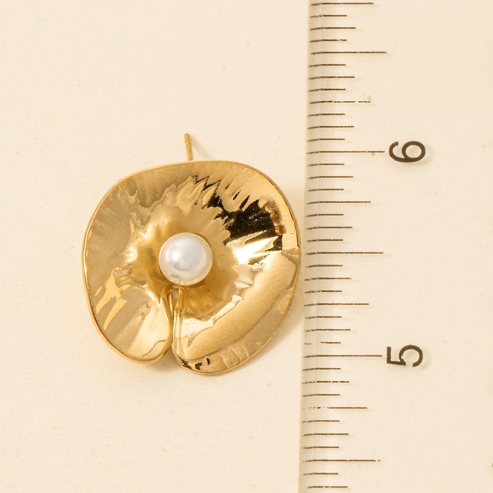 This piece is designed to be both stylish and functional, this pair of stud earrings radiates a sleek gold dipped pearl stud lily pad design. Upgrade your fashion game with this versatile pair of stud earrings, a timeless addition that complements any outfit seamlessly. Available in GOLD. This item is sold in packs of 1.