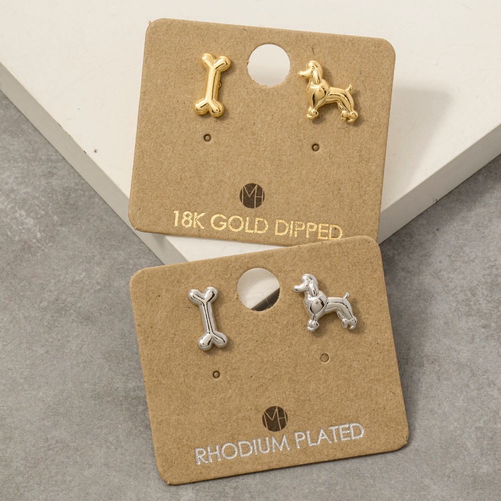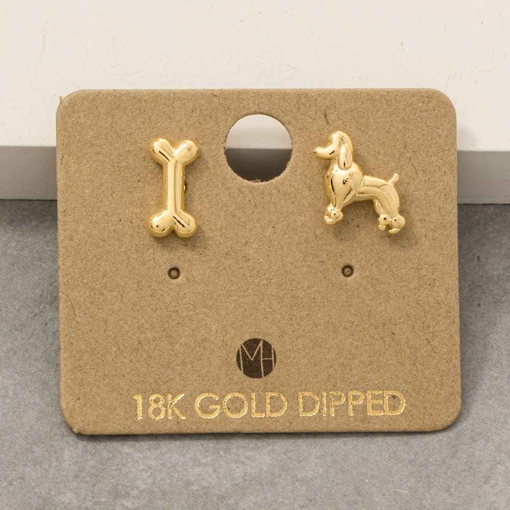 A contemporary masterpiece, this pair of stud earrings showcases an alluring gold dipped poodle and bone design. This item adds the perfect finishing touch to any outfit, making it stand out from the crowd. Available in G, S. This item is sold in packs of 1.