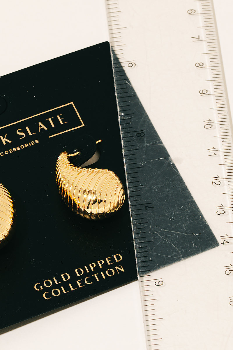 Make a statement, this pair of drop earrings displays a unique gold dipped ribbed teardrop earrings design. Perfect for adding some personality and flair to your wardrobe, this accessory is a must-have. Available in G. This item is sold in packs of 1.