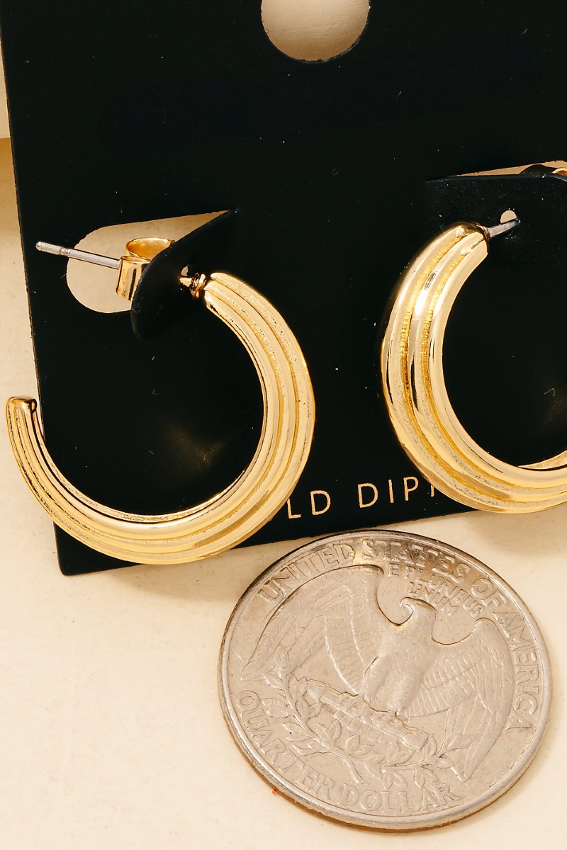 • this pair of columbus jewelry hoop earrings introduces a stunning gold dipped ridged style. Unveil modern elegance with this subtly intricate pair of hoop earrings.