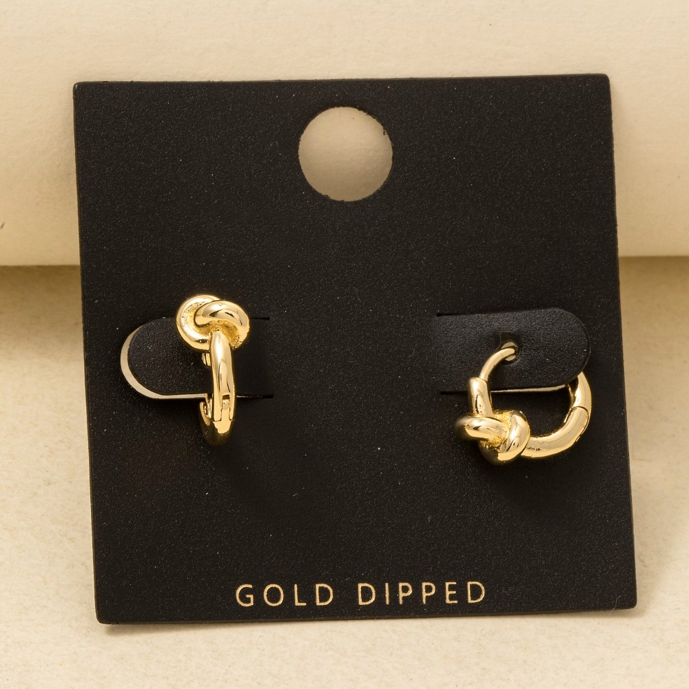 • A bold and daring choice, perfect for those who want to stand out from the crowd, this pair of hoop earrings showcases a breathtaking gold dipped small knot hinge design. Redefine your fashion identity with this versatile pair of hoop earrings, a timeless piece that complements any wardrobe. Available in GOLD,2SILVER. This item is sold in packs of 1.