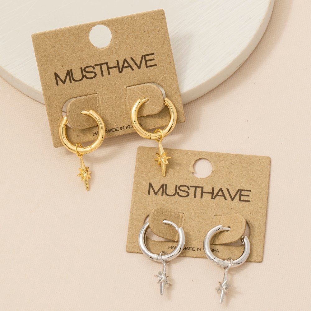 • Elevate any look, this pair of hoop earrings showcases a breathtaking gold dipped star drop design. Elevate your everyday style with this versatile pair of hoop earrings, a simple yet impactful addition to your fashion repertoire. Available in G, S. This item is sold in packs of 1.