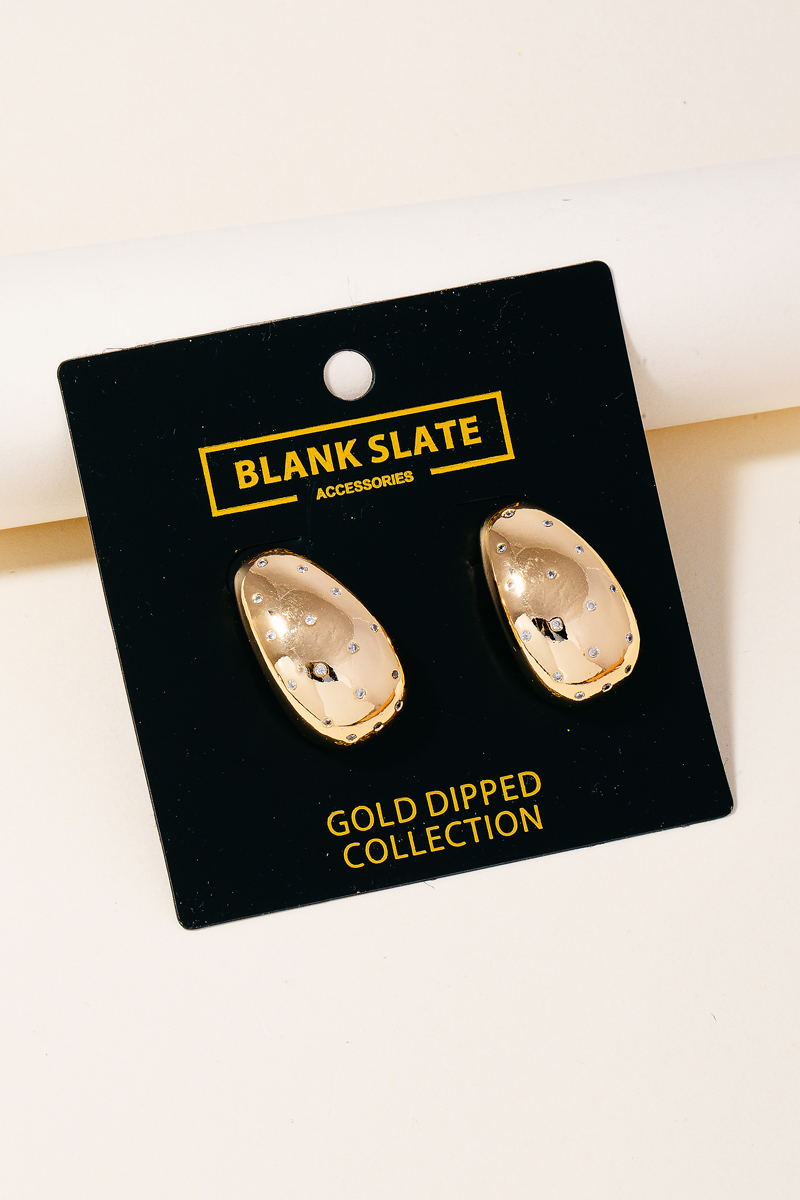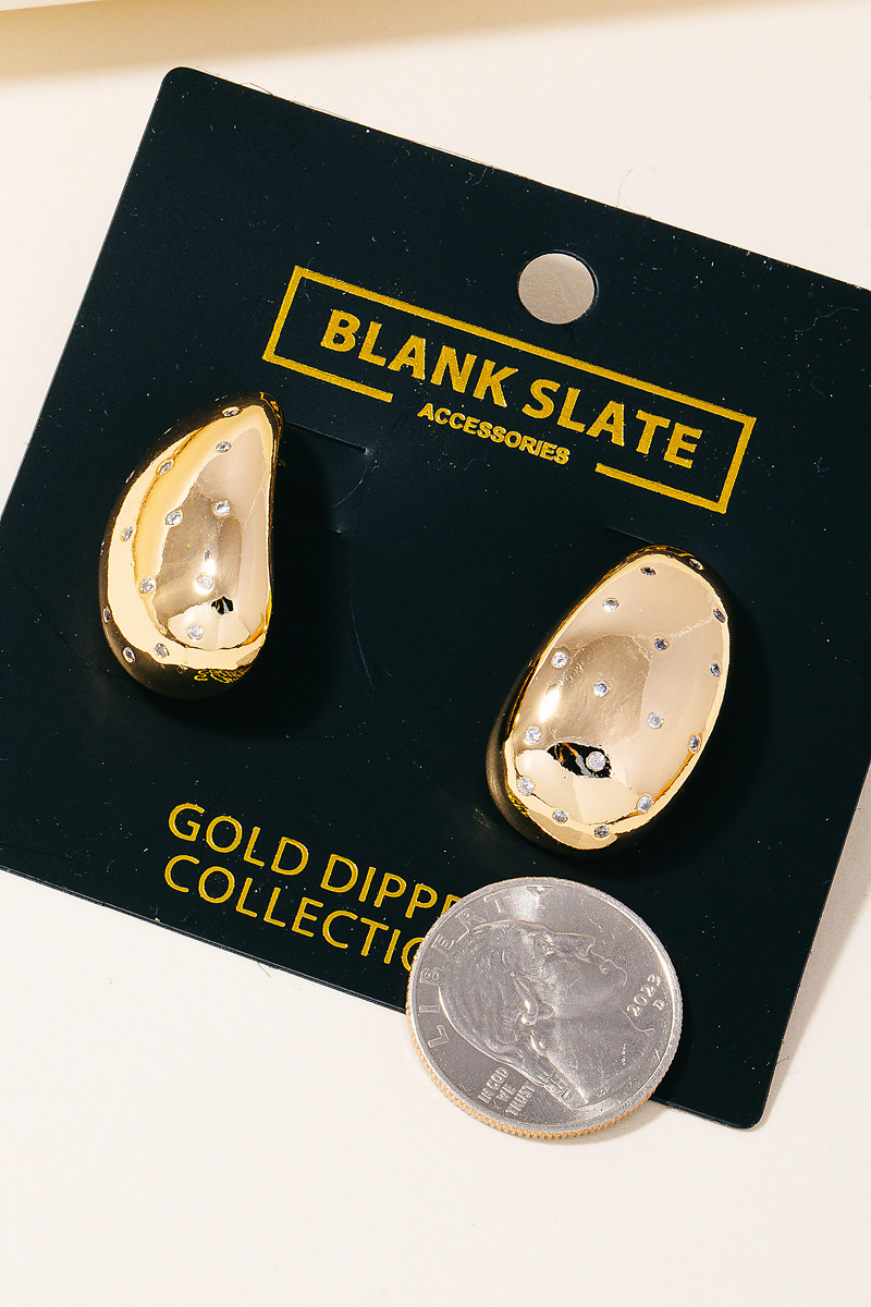 • This pair of drop earrings features a fashionable gold dipped studded teardrop earrings style. Experience a subtle blend of modernity and classic charm as this pair of drop earrings effortlessly adorns your ensemble.