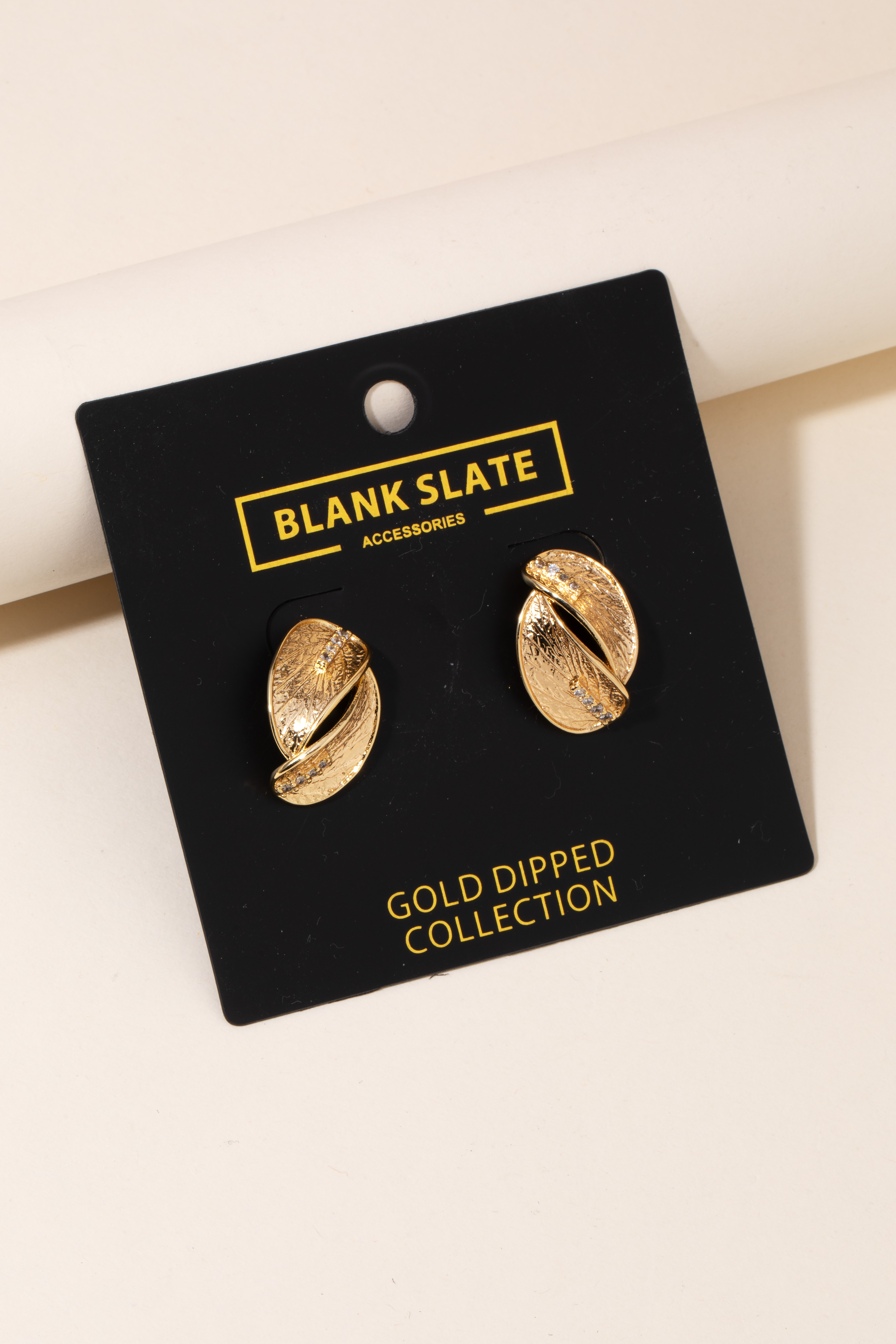 • This pair of earrings features a fashionable gold dipped textured double leaf style. Experience the joy of accessorizing with this piece that effortlessly combines versatility and charm.