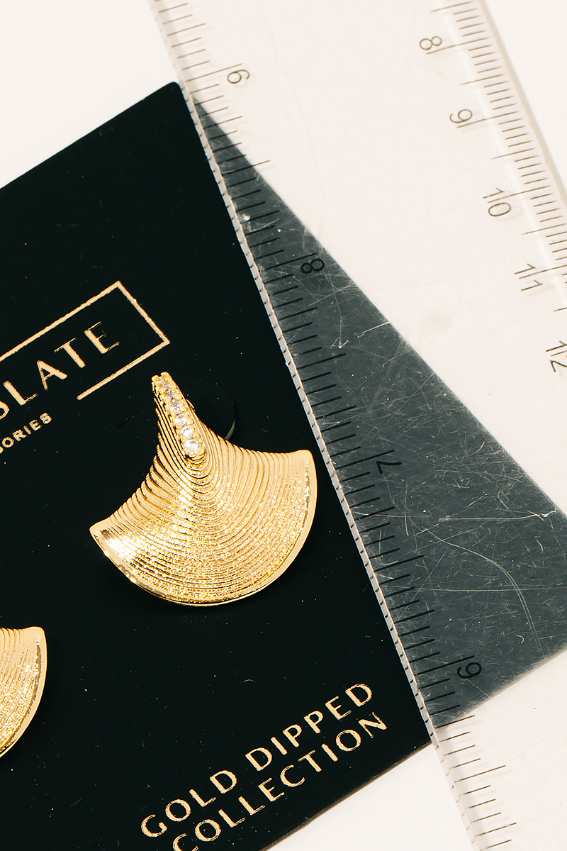 Gold Dipped Ridged Heart Shield Stud Earrings