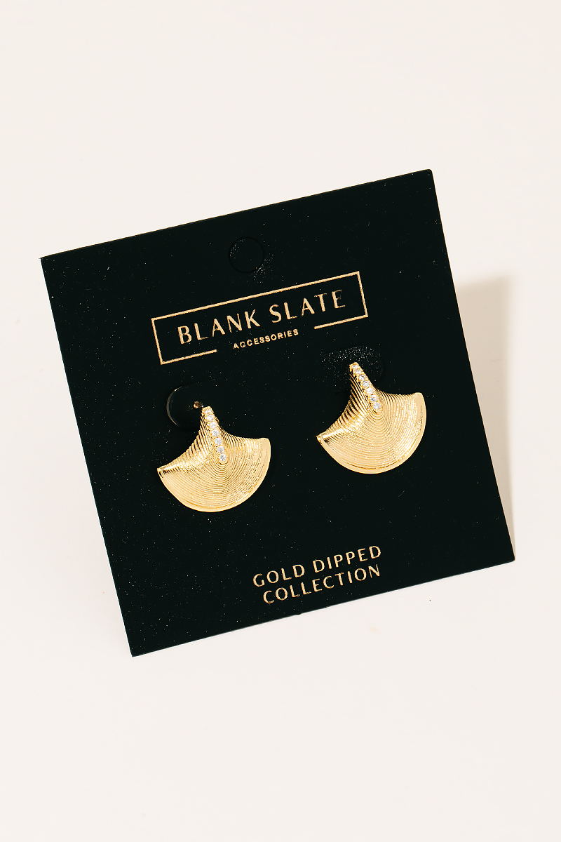 • Make a statement, this pair of earrings contains a special gold dipped tower fan design. This accessory is the perfect finishing touch to any outfit, adding a touch of sophistication and glamour. Available in G. This item is sold in packs of 1.