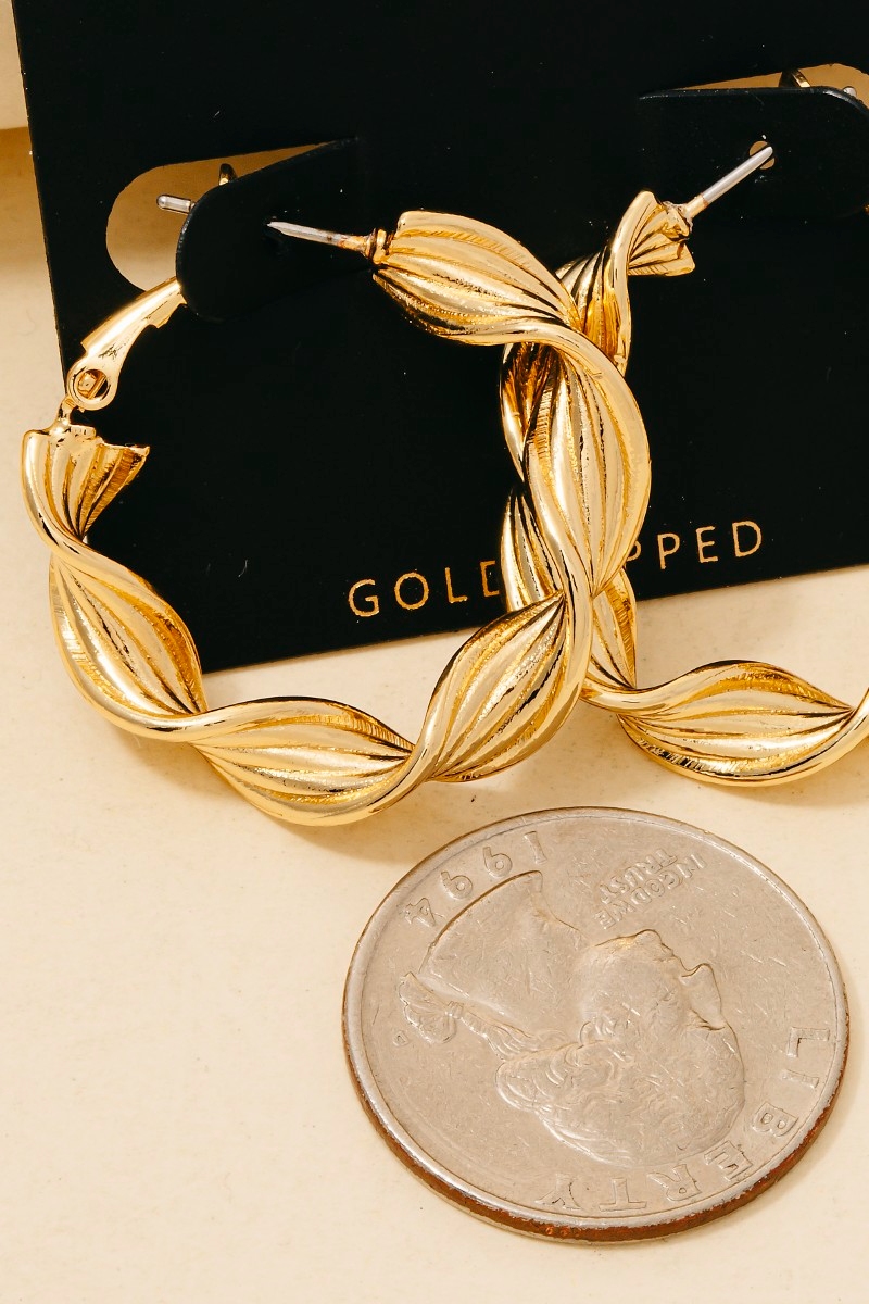 • this pair of columbus jewelry hoop earrings showcases a unique gold dipped twisted style. Celebrate individuality with this pair of columbus jewelry hoop earrings that effortlessly expresses your unique sense of style.