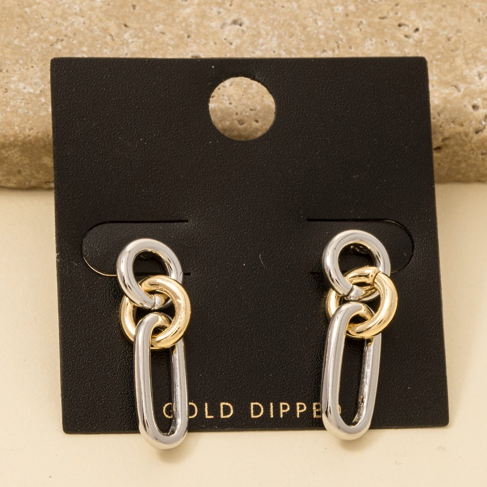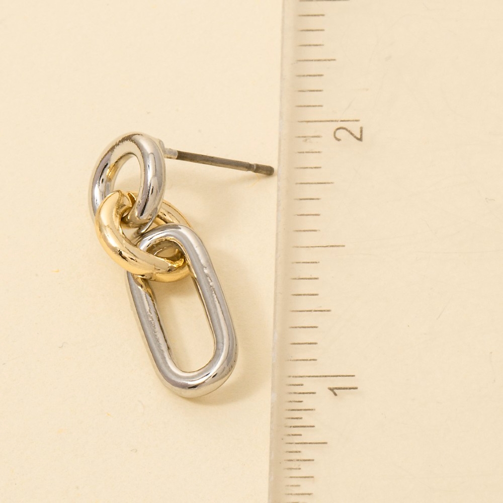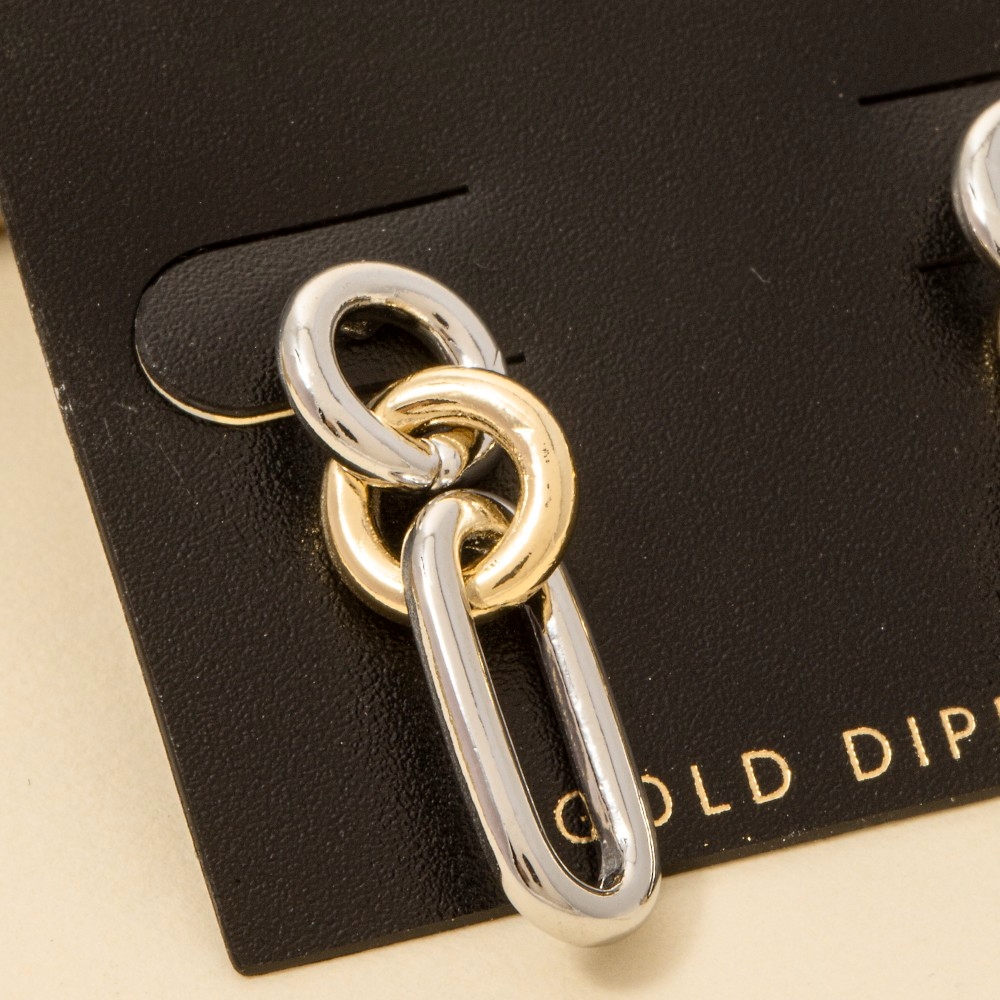 Add a touch of elegance and glamour to your look, this pair of dangle earrings encompasses a grand gold dipped two tone oval chain stud design. Infuse elegance into your daily wardrobe with the versatile charm of this must-have pair of dangle earrings. Available in TWO TONE. This item is sold in packs of 1.