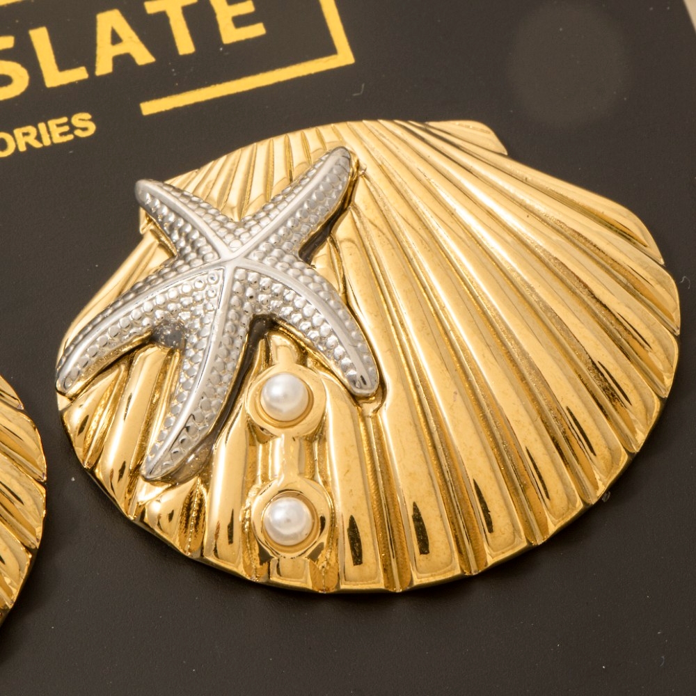 Perfectly polished and endlessly versatile, this pair of stud earrings brings a one-of-a-kind gold dipped two tone starfish and shell large design. Transform your outfit into a fashion masterpiece with this versatile pair of stud earrings, an essential for the style-conscious individual. Available in GOLD. This item is sold in packs of 1.
