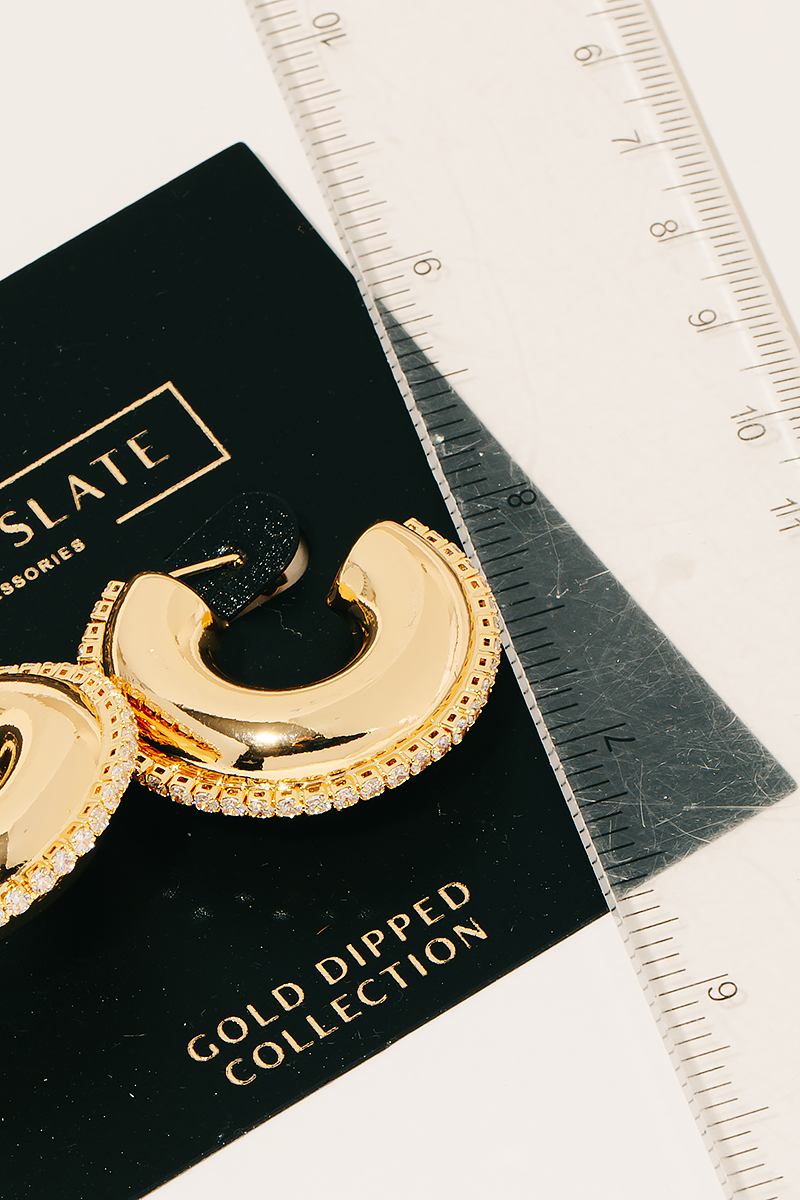 • This pair of hoop earrings is made with Gold Dipped.