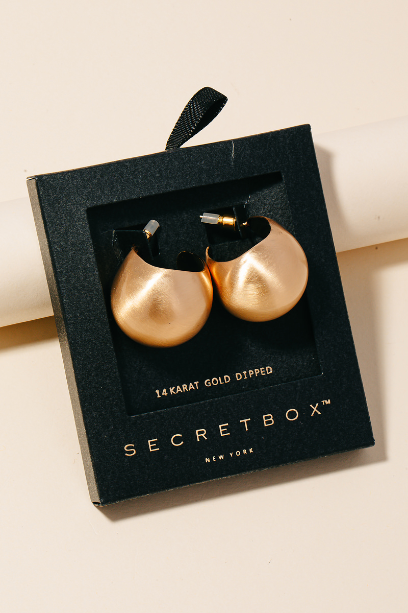• Perfectly polished and endlessly versatile, this pair of hoop earrings boasts a magnificent secret box brushed gold dipped hollow ball design. The perfect pair of hoop earrings for completing any outfit, whether you're dressing up or keeping it casual. Available in GD. This item is sold in packs of 1.