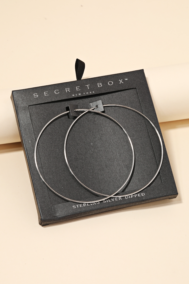 • This new must have trending pair of hoop earrings that features a unique secret box oversized skinny hoop earrings design. A stunning must have for the Spring season! Available in GD, RG and WG. This item is sold in packs of 1.