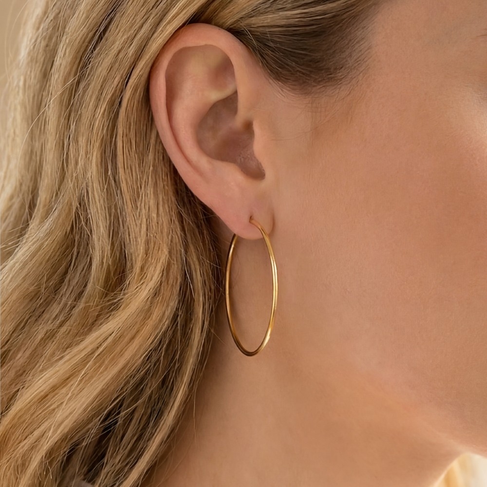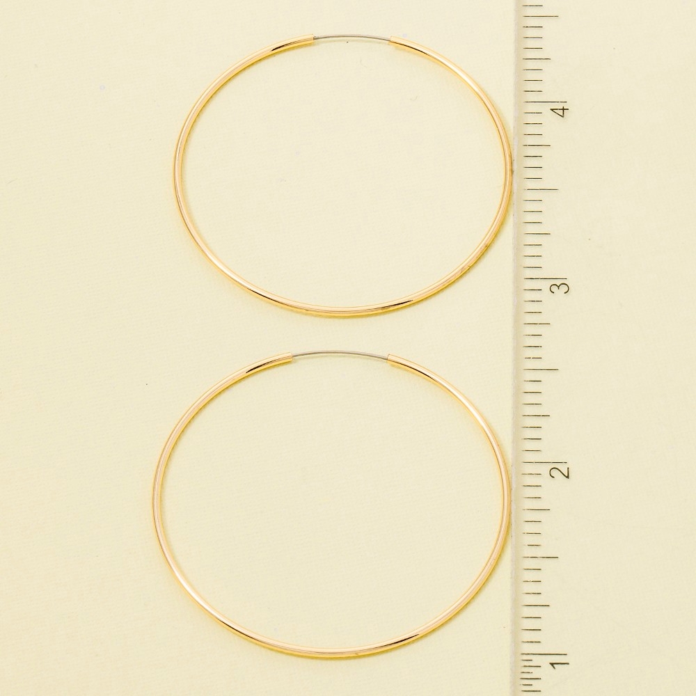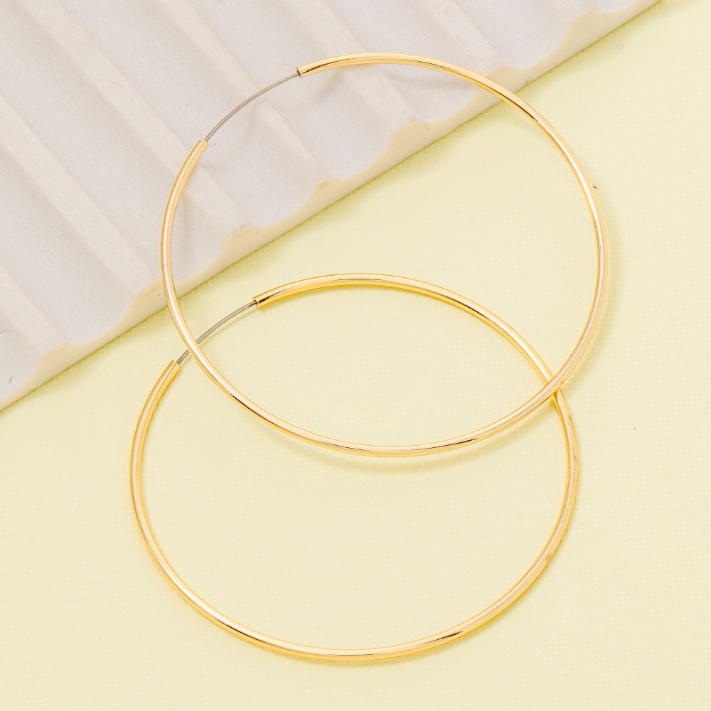 • This season's must-have pair of hoop earrings, this pair of hoop earrings boasts a magnificent 40mm thin design. Elevate your everyday style with this versatile pair of hoop earrings, a simple yet impactful addition to your fashion repertoire. Available in GOLD. This item is sold in packs of 1.