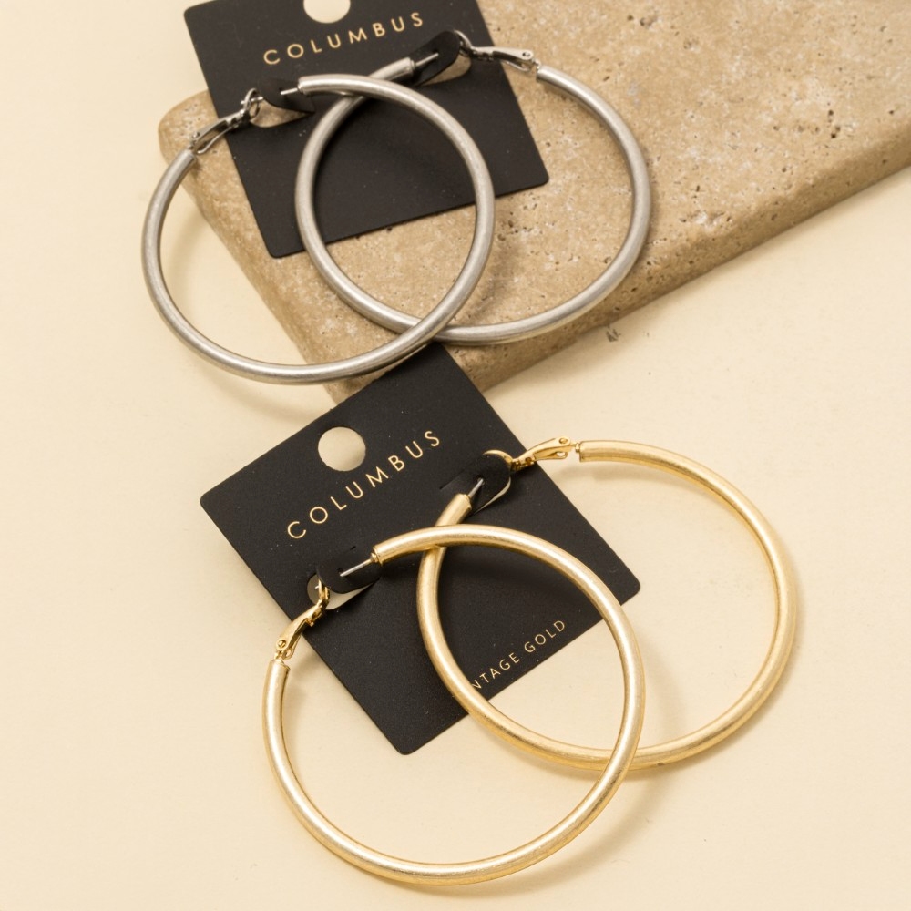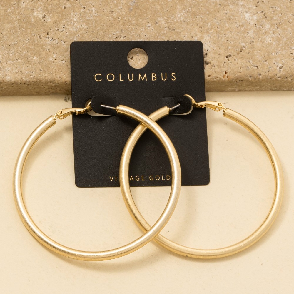 - Make a statement, this pair of hoop earrings displays a unique 6cm vintage gold tube design. The perfect way to elevate any outfit, this pair of hoop earrings adds a touch of elegance and style. Available in GOLD, 2SILVER. This item is sold in packs of 1.