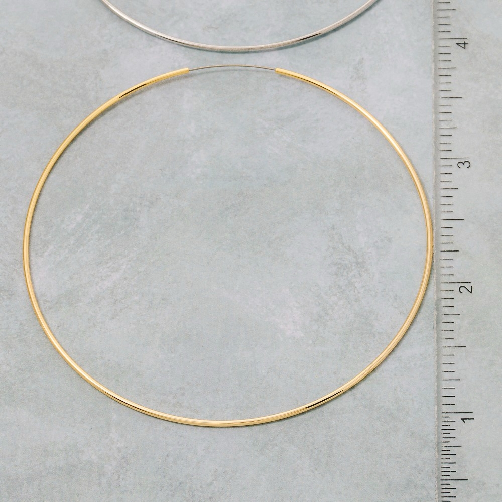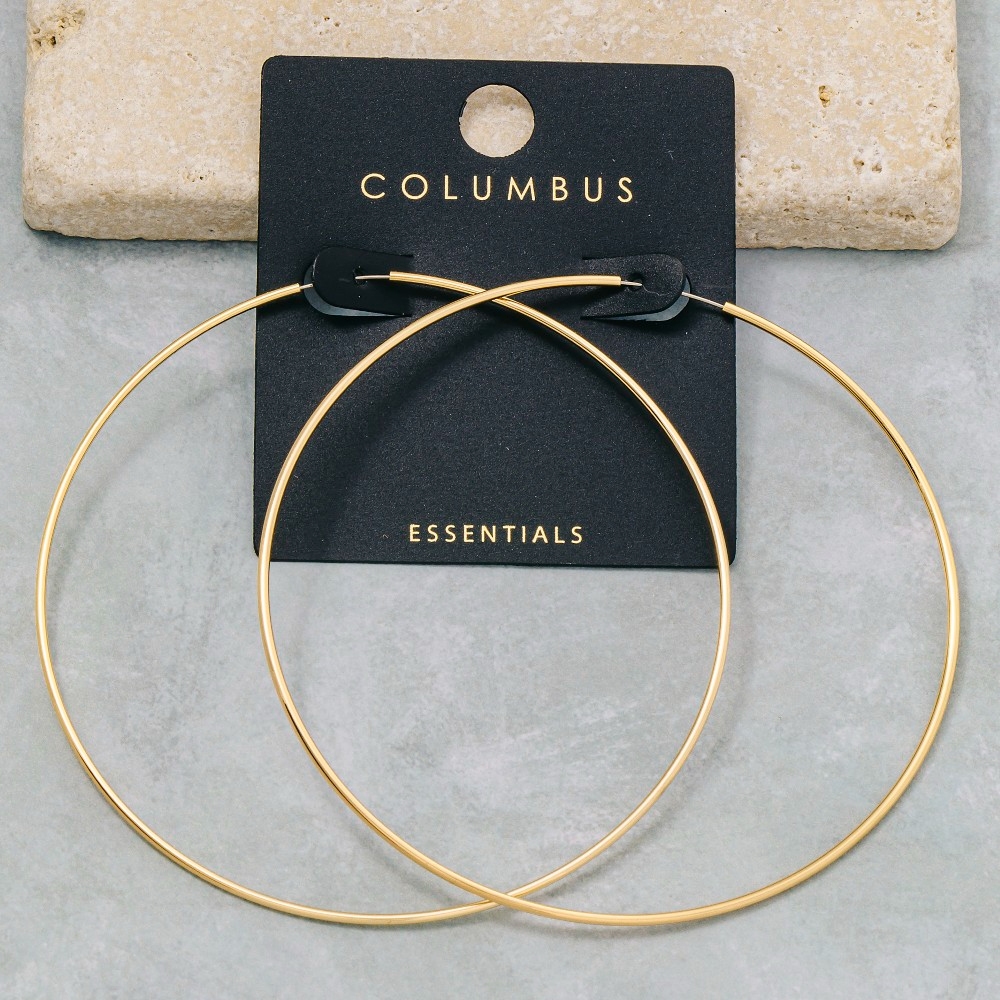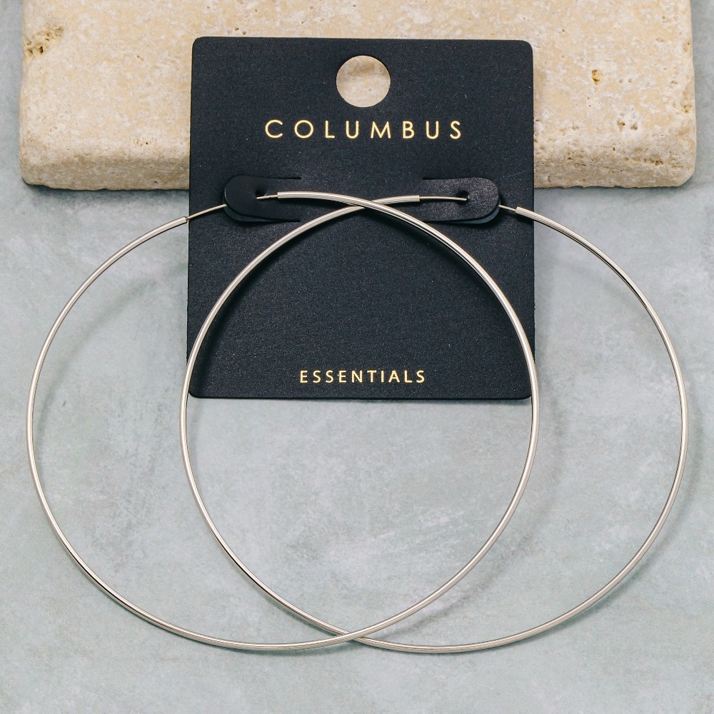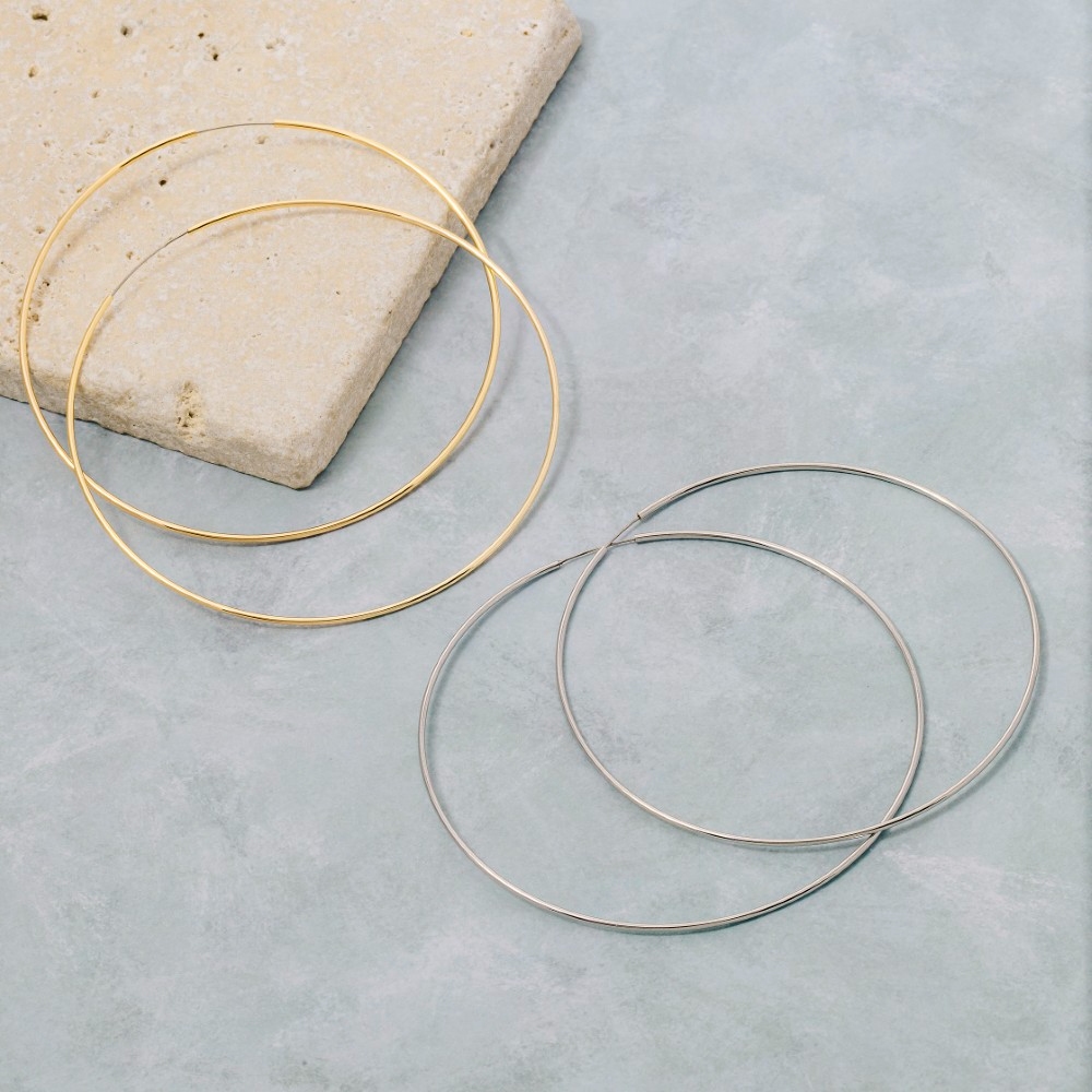 - Stay ahead of the fashion curve, this pair of hoop earrings possesses a fine 70mm oversized thin design. Achieve a perfect balance of style and sophistication with this versatile pair of hoop earrings, the ultimate choice for the fashion-savvy individual. Available in GOLD,2SILVER. This item is sold in packs of 1.