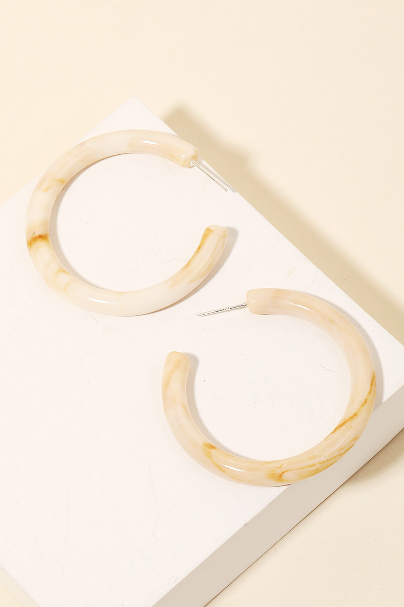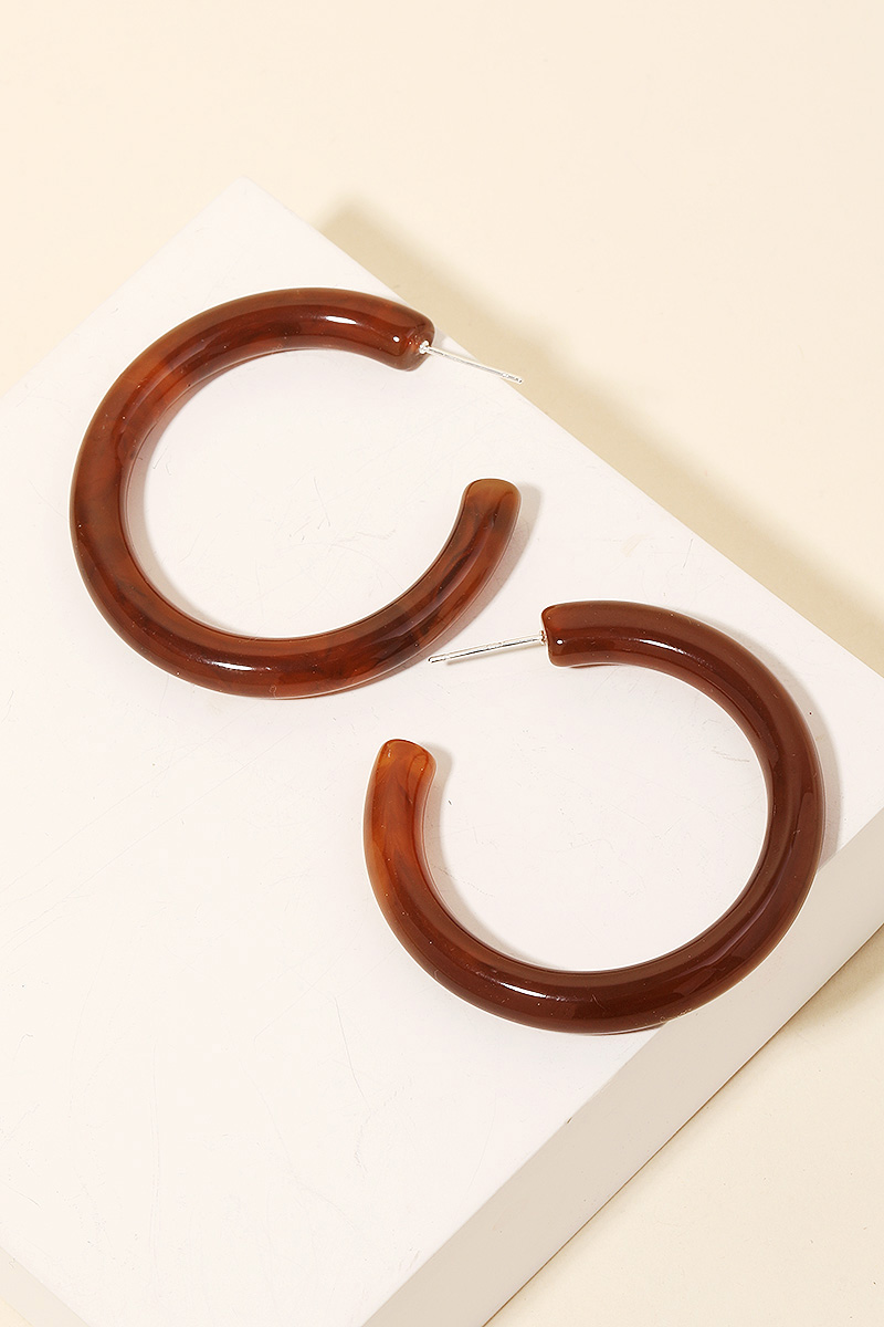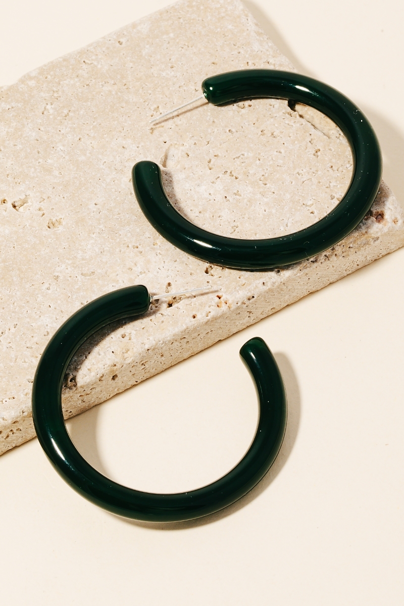 • The epitome of sophistication and style, this pair of hoop earrings displays a unique acetate tube design. Perfect for adding some texture and dimension to any outfit, this pair of hoop earrings is a must-have. Available in BR, GN and IV. This item is sold in packs of 1.