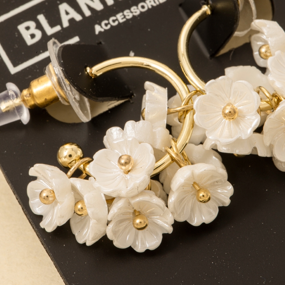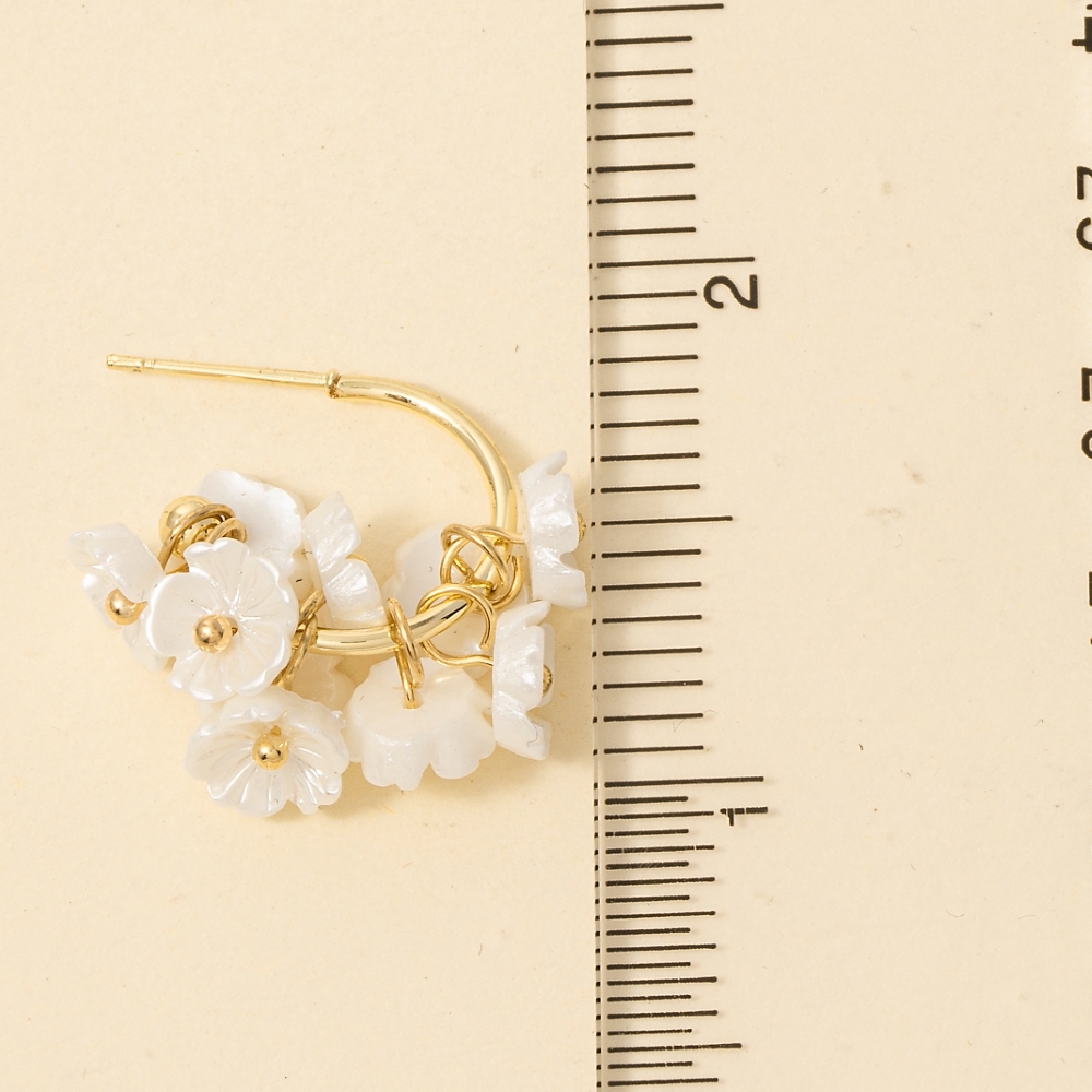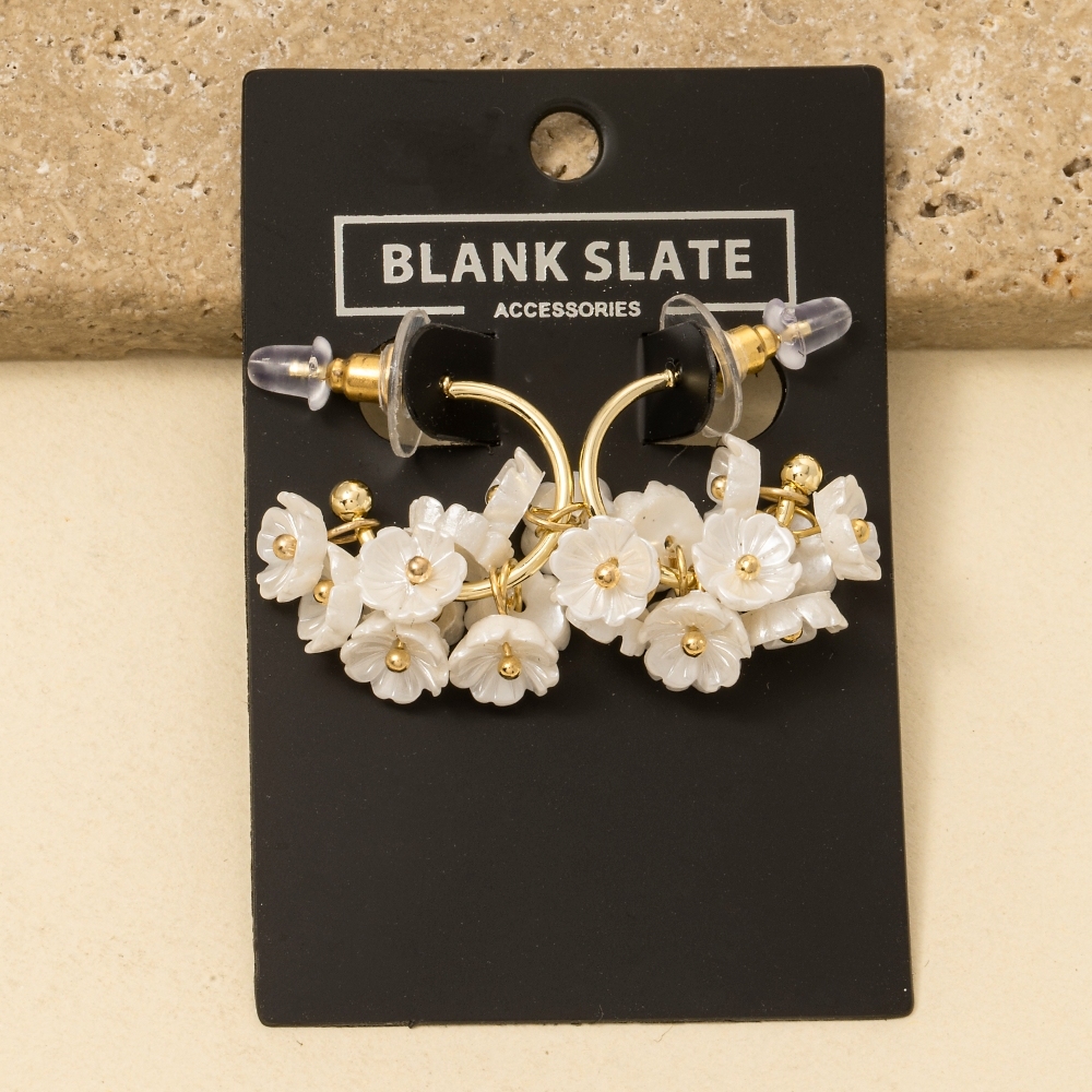 The perfect way to add some sparkle to your outfit, this pair of hoop earrings encompasses a grand acrylic flower cluster design. Elevate your fashion statement with this versatile pair of hoop earrings, adding a touch of glamour to your everyday look. Available in GWH. This item is sold in packs of 1.