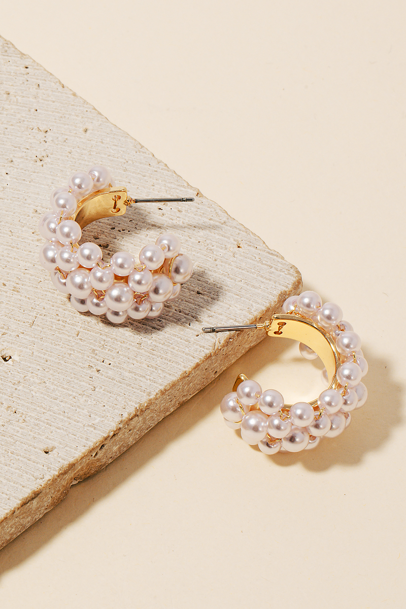 • The perfect way to add some edge to your look, this pair of hoop earrings exudes a refined cluster pearl studded design. Elevate your everyday style with this versatile pair of hoop earrings, a simple yet impactful addition to your fashion repertoire. Available in GD. This item is sold in packs of 1.
