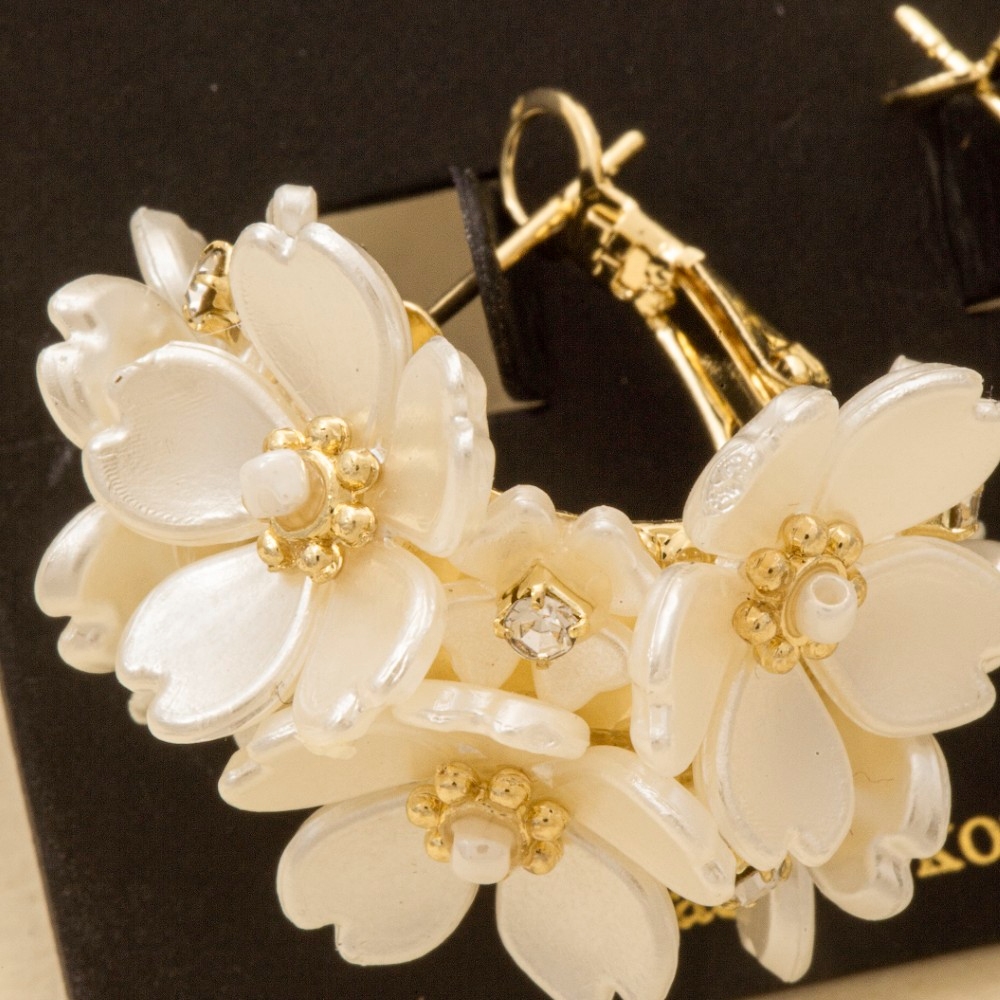 • Stay on-trend and stand out from the crowd, this pair of hoop earrings embodies a sophisticated cluster pearly petals floral design. This item is perfect for adding some color and vibrancy to any outfit. Available in G. This item is sold in packs of 1.