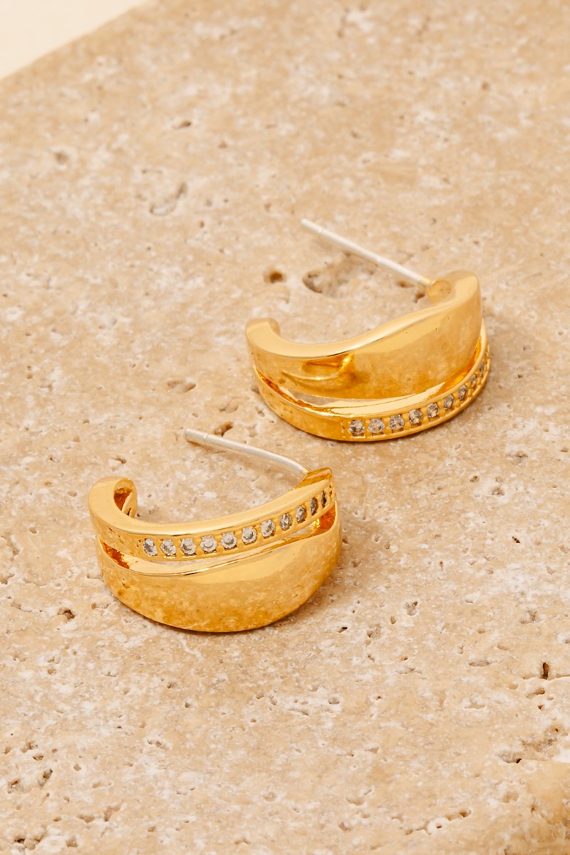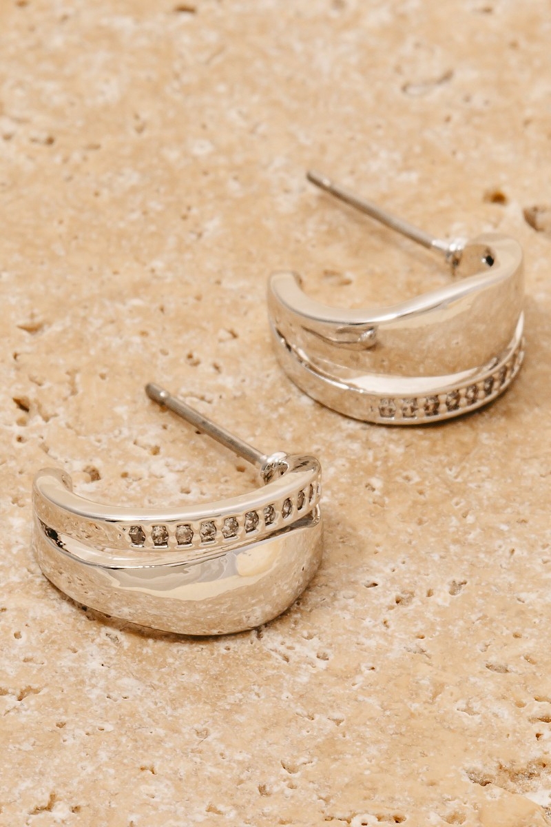 This pair of hoop earrings displays a fashionable cz pave row layered style. Experience a burst of creativity in accessorizing as this piece effortlessly sets the tone for your unique style.