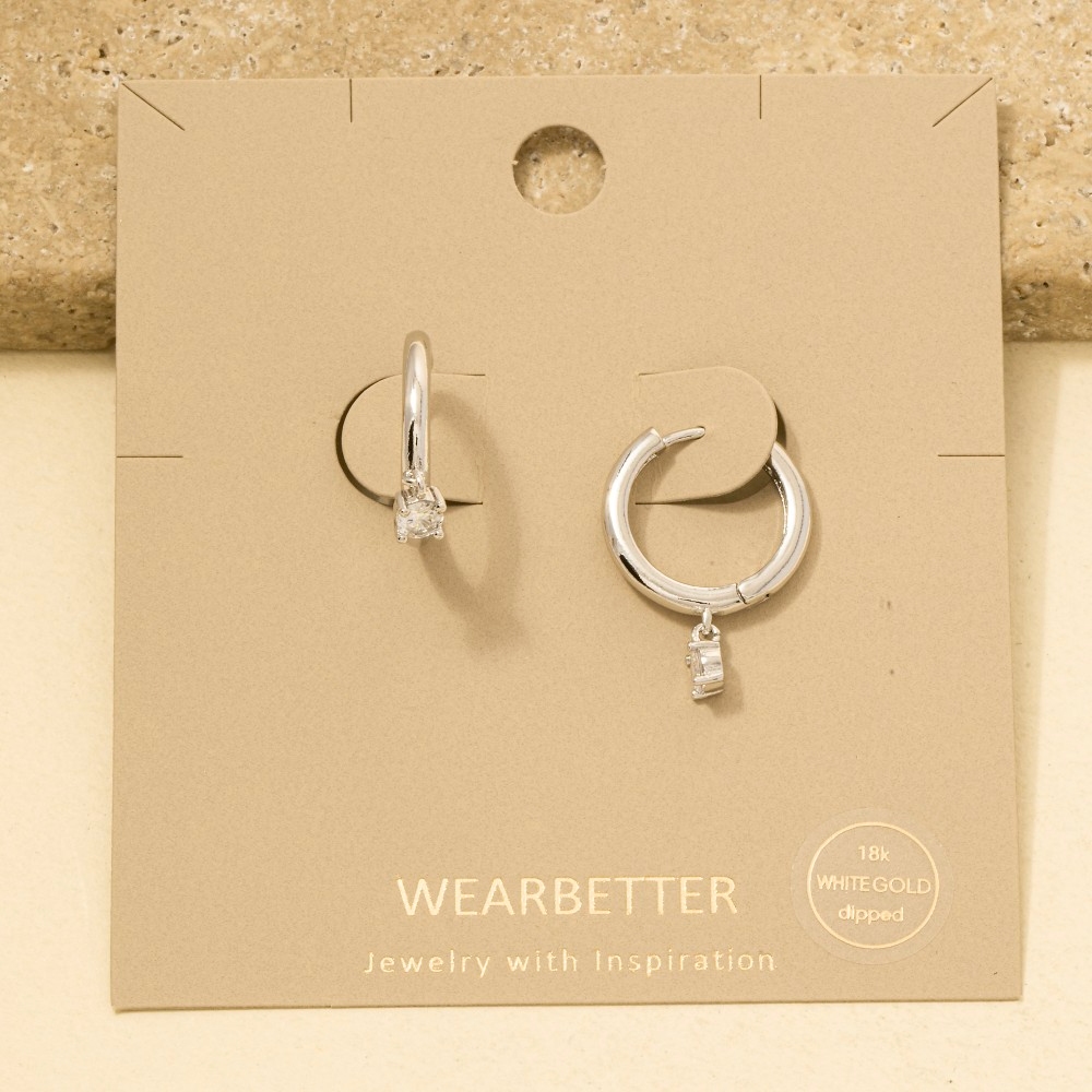 This pair of hoop earrings is made with 90% Brass and 10% Cz.