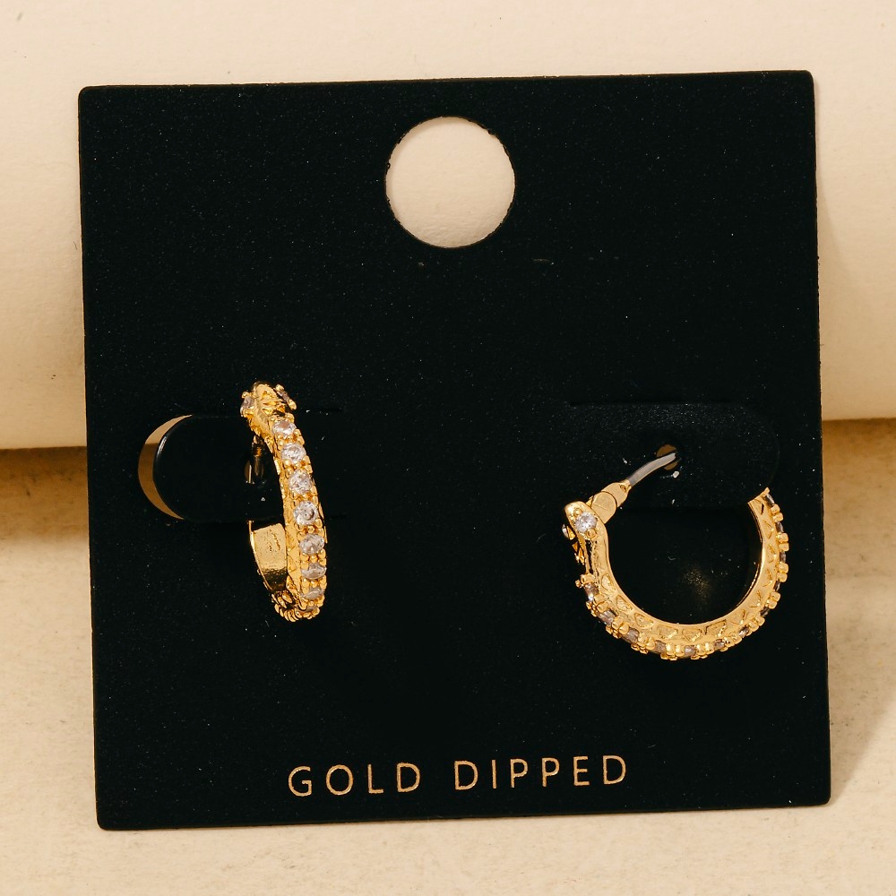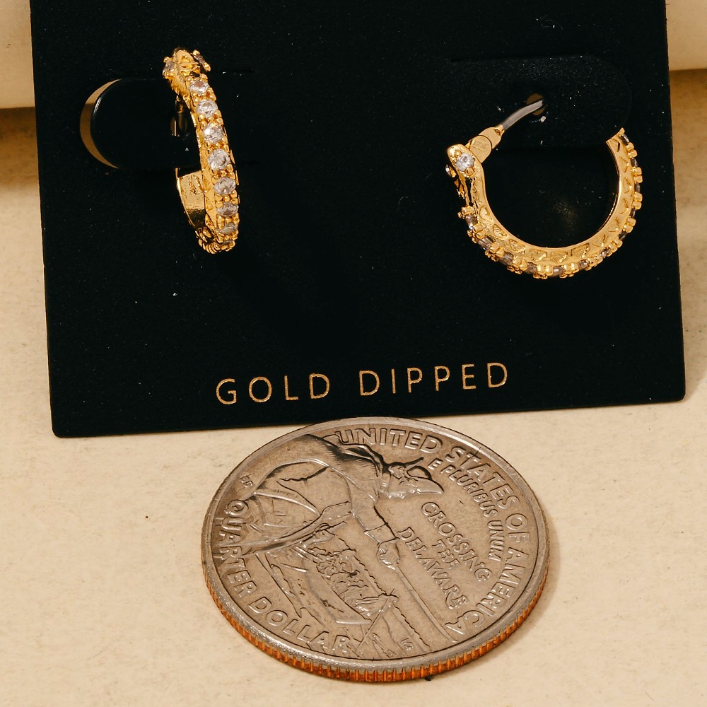• This season's must-have pair of hoop earrings, this pair of columbus jewelry hoop earrings emanates an elegant gold dipped cubic zirconia pave edge latch design. Redefine your fashion identity with this versatile pair of hoop earrings, a timeless piece that complements any wardrobe. Available in GOLD. This item is sold in packs of 1.