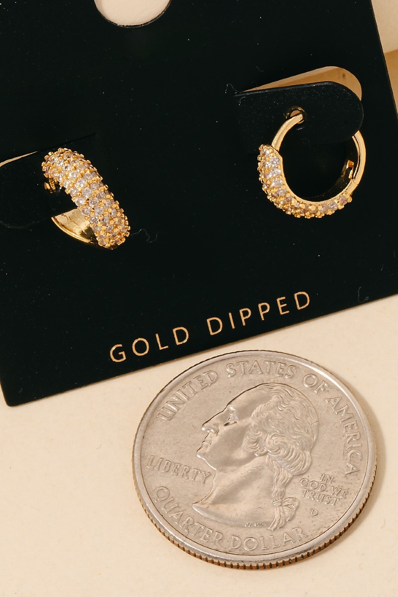 this pair of columbus jewelry hoop earrings adds a modern gold dipped cubic zirconia pave small hinge style. Elevate your ensemble with this chic, timeless pair of hoop earrings.