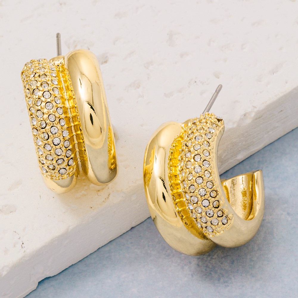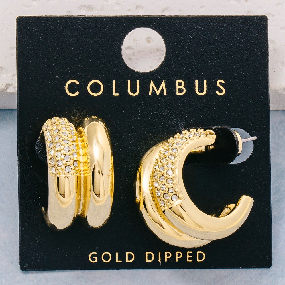 • A stunning addition to any jewelry collection, this pair of hoop earrings encompasses a grand gold dipped cubic zirconia two row design. Redefine your wardrobe with this versatile pair of hoop earrings, a timeless addition that brings an air of sophistication to any look. Available in GOLD. This item is sold in packs of 1.