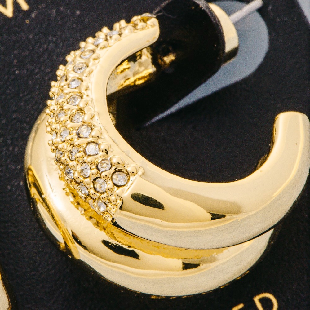 • This pair of hoop earrings is made with 80% Zinc, 15% Crystal and 5% Ssp.