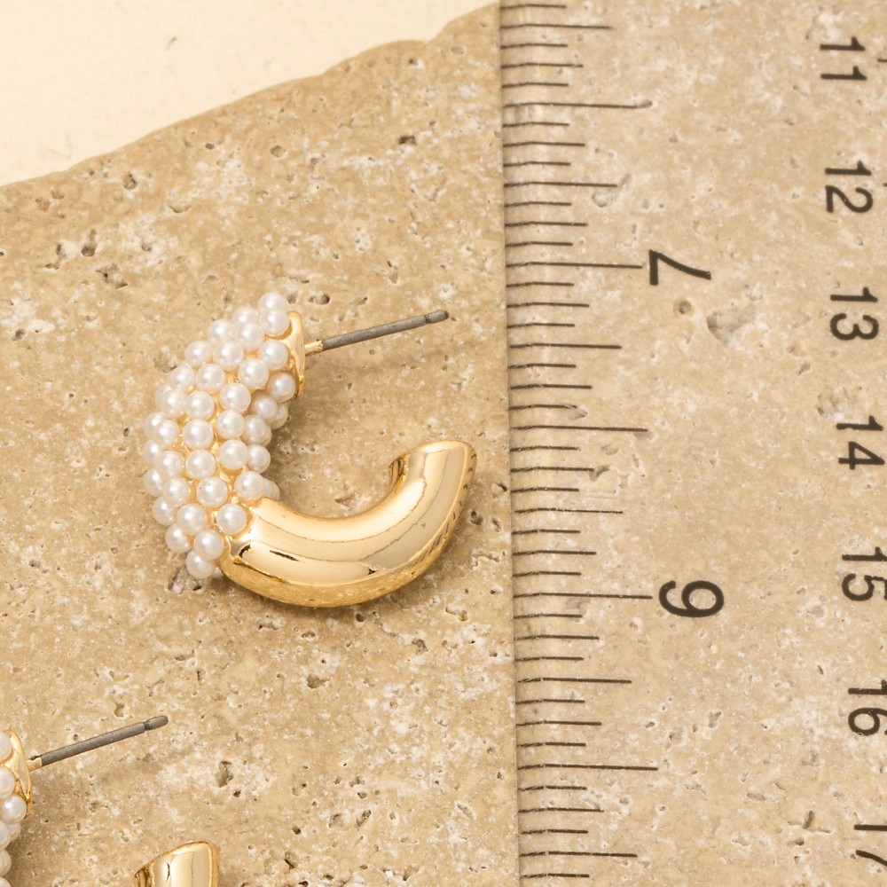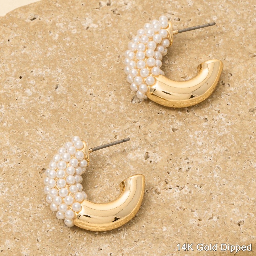 This piece is both elegant and versatile, this pair of hoop earrings introduces an exceptional gold dipped half pearl pave design. This item adds the perfect finishing touch to any outfit, making it stand out from the crowd. Available in CRM14KGD. This item is sold in packs of 1.