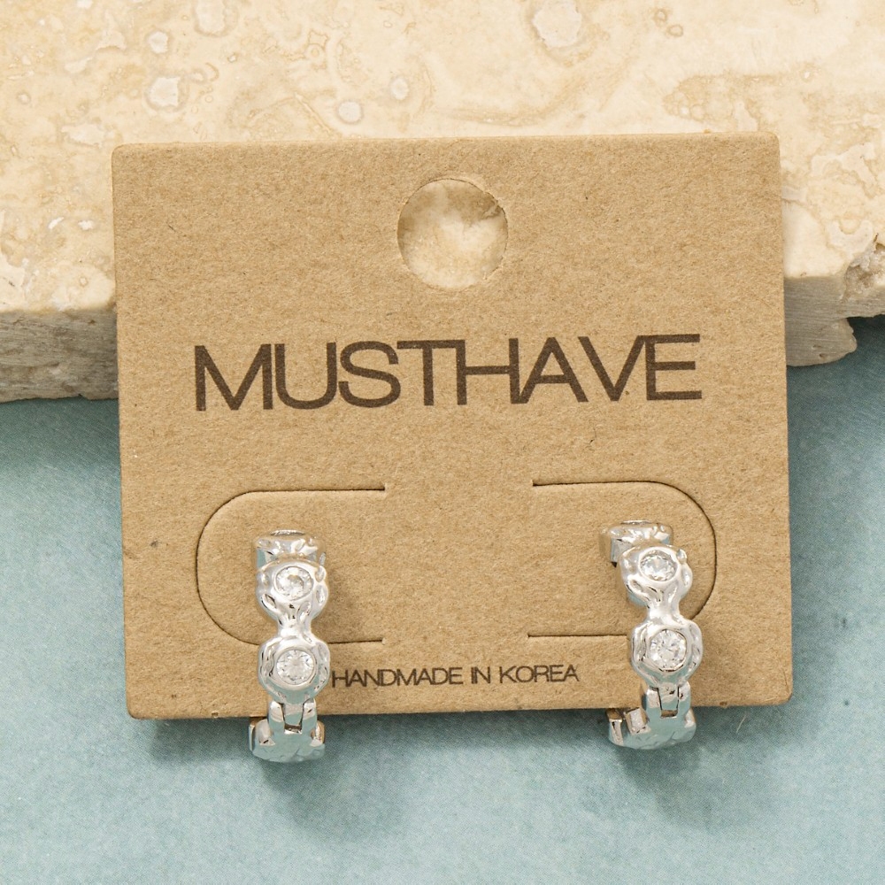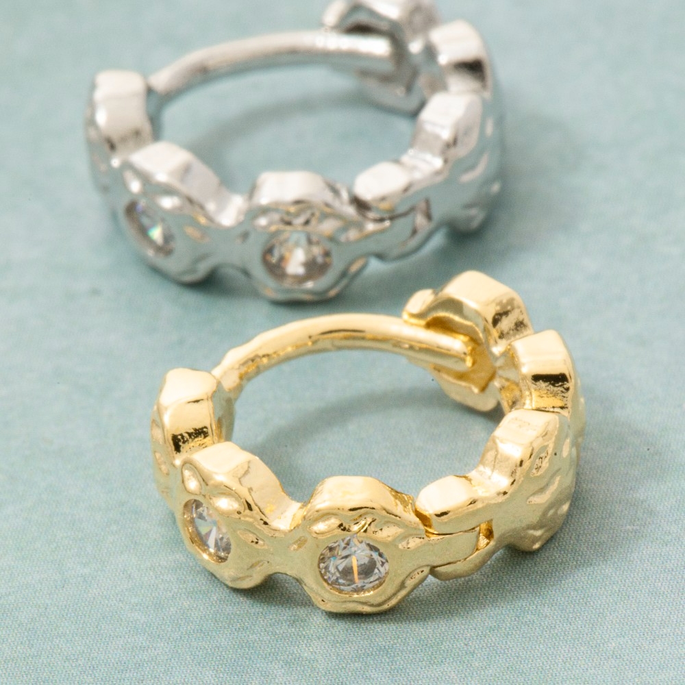 • This pair of hoop earrings is made with 80% Brass and 20% Cubic Zirconia.