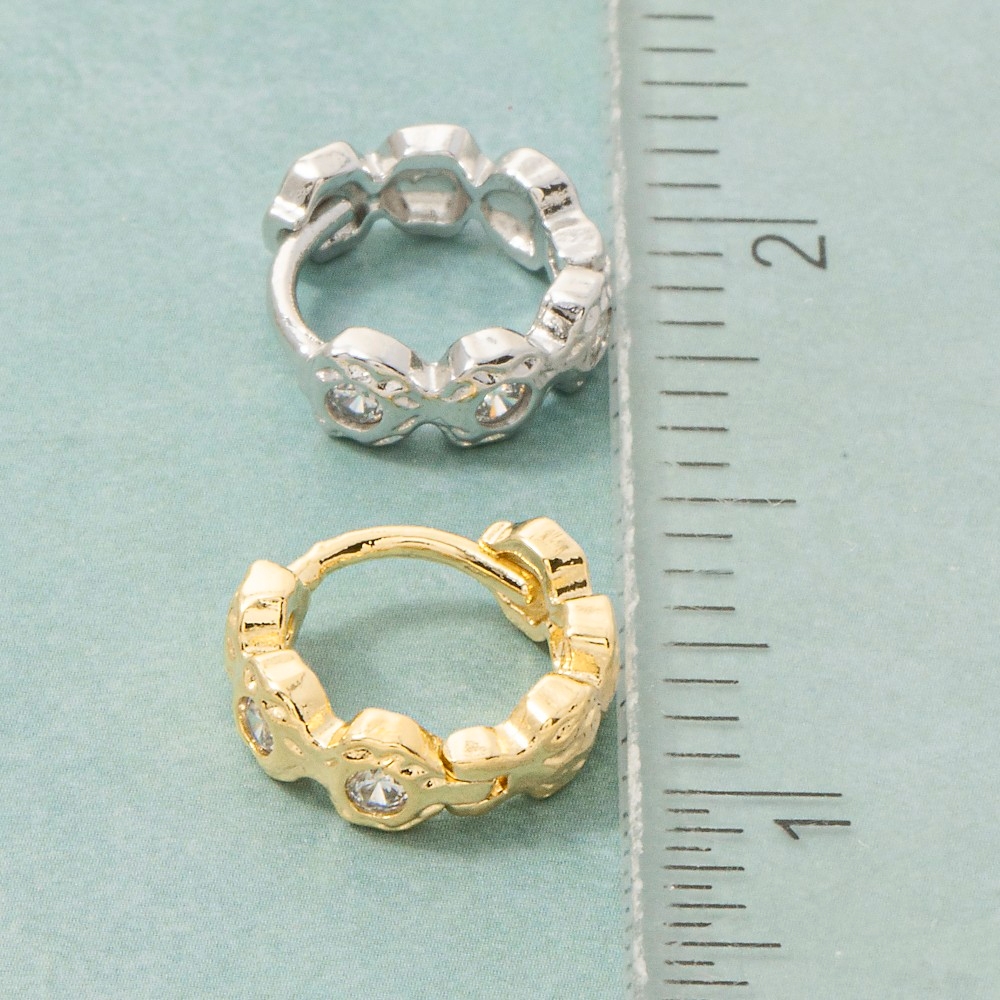 • Effortlessly elevate your outfit, this pair of hoop earrings contains a special gold dipped mini cubic zirconia studded design. This pair of hoop earrings is the perfect finishing touch to any outfit, adding a touch of sophistication and glamour. Available in G, S. This item is sold in packs of 1.