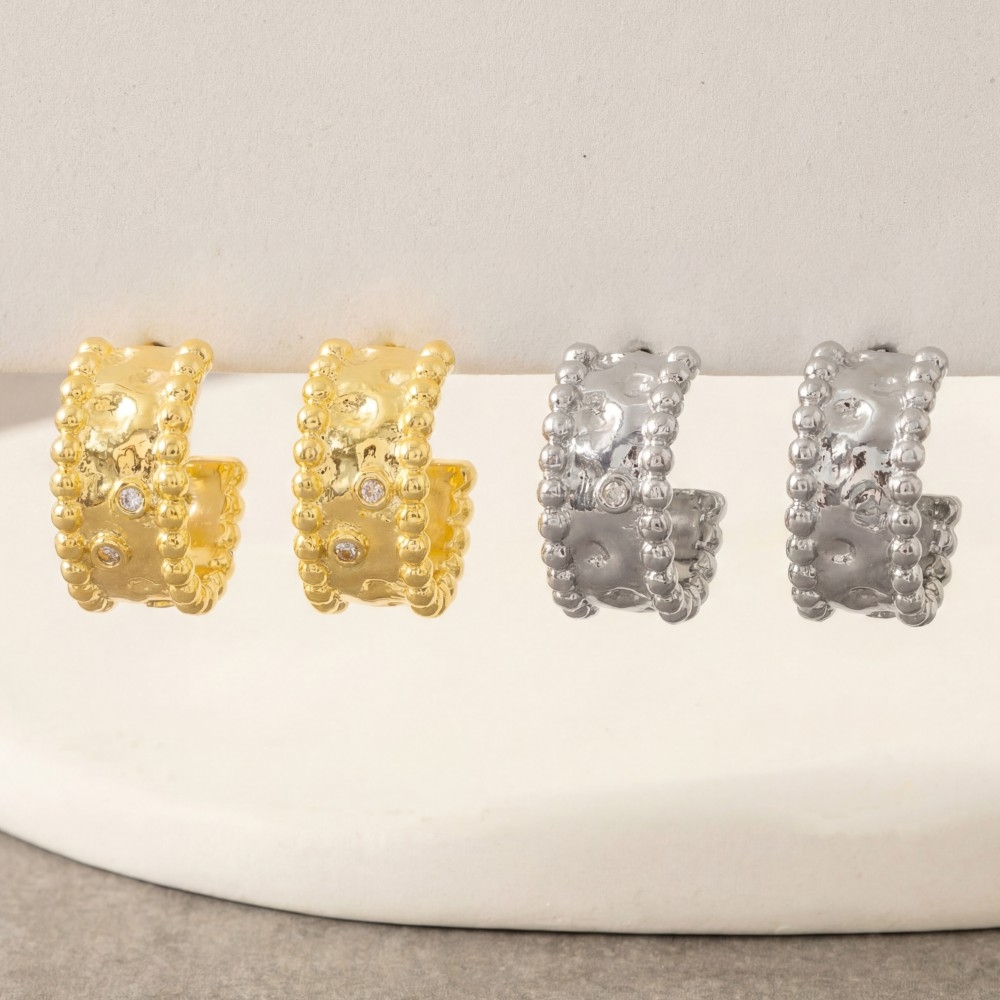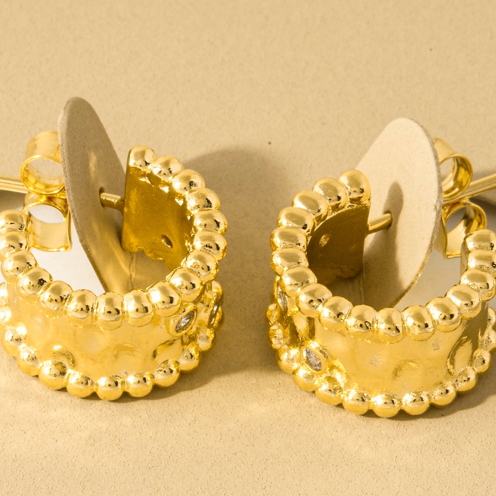 - This pair of hoop earrings is made with 70% Brass and 30% Cz.