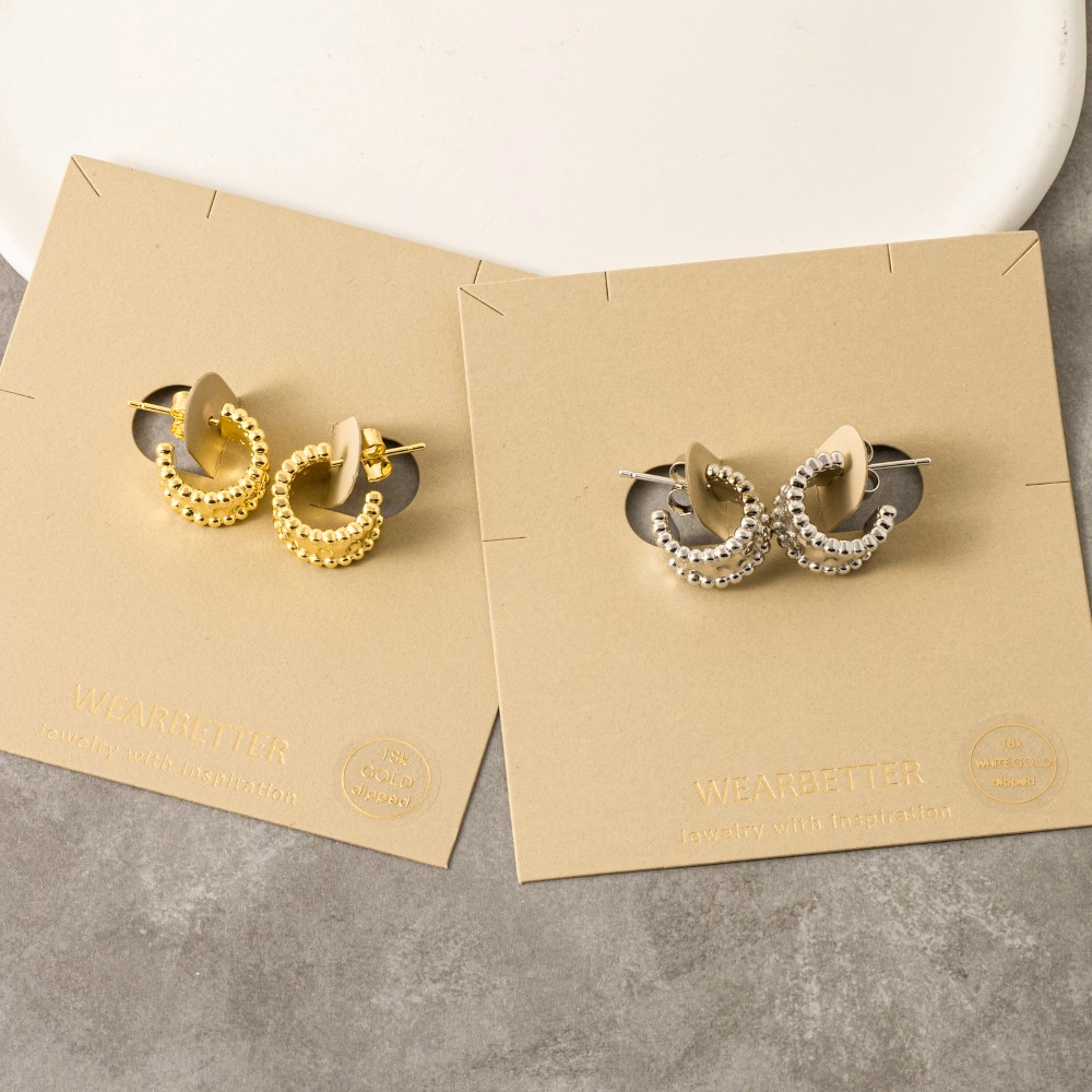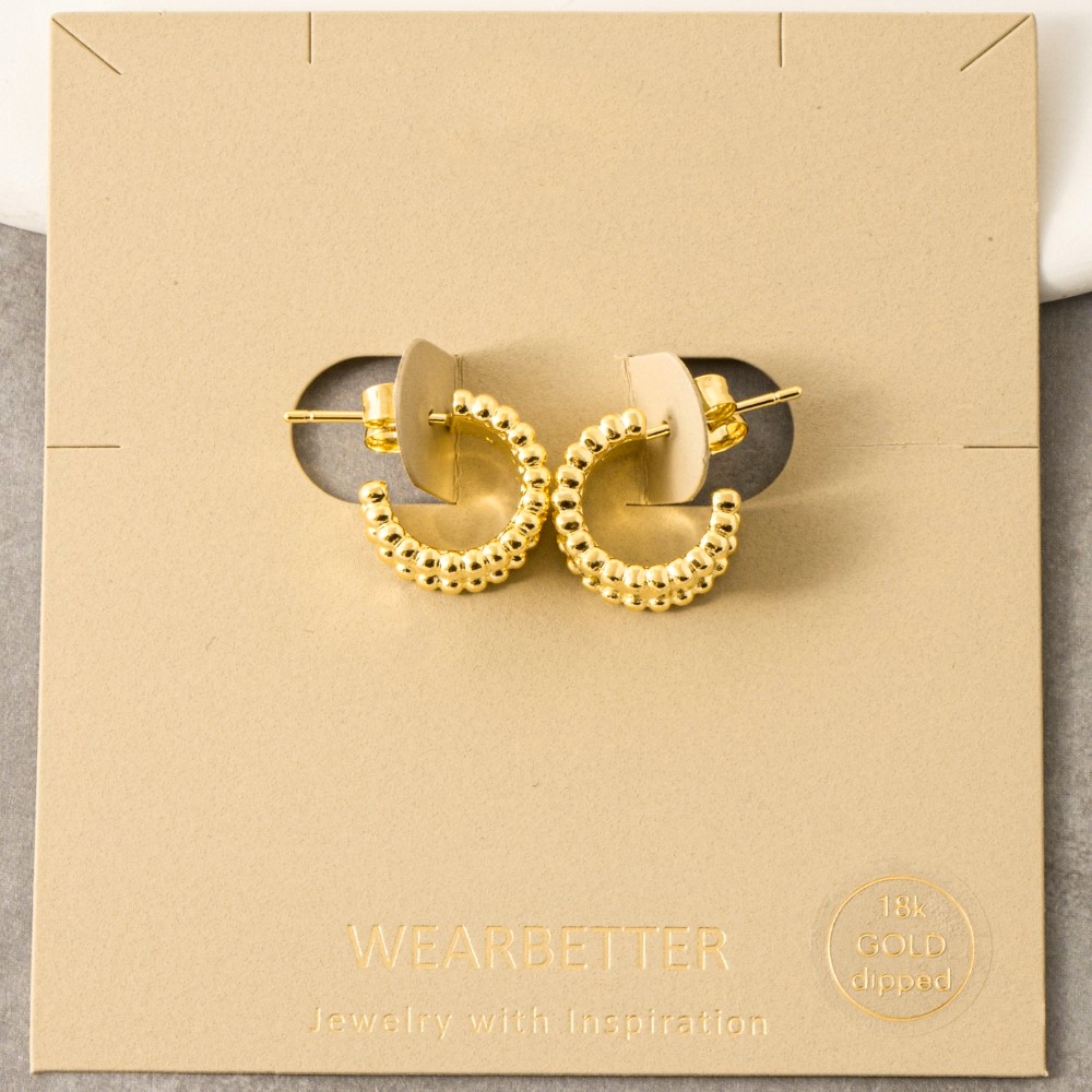 - A stunning piece that is sure to turn heads, this pair of hoop earrings boasts a magnificent gold dipped wide hammered mini design. A chic and sophisticated pair of hoop earrings that's perfect for dressing up or down. Available in G, S. This item is sold in packs of 1.