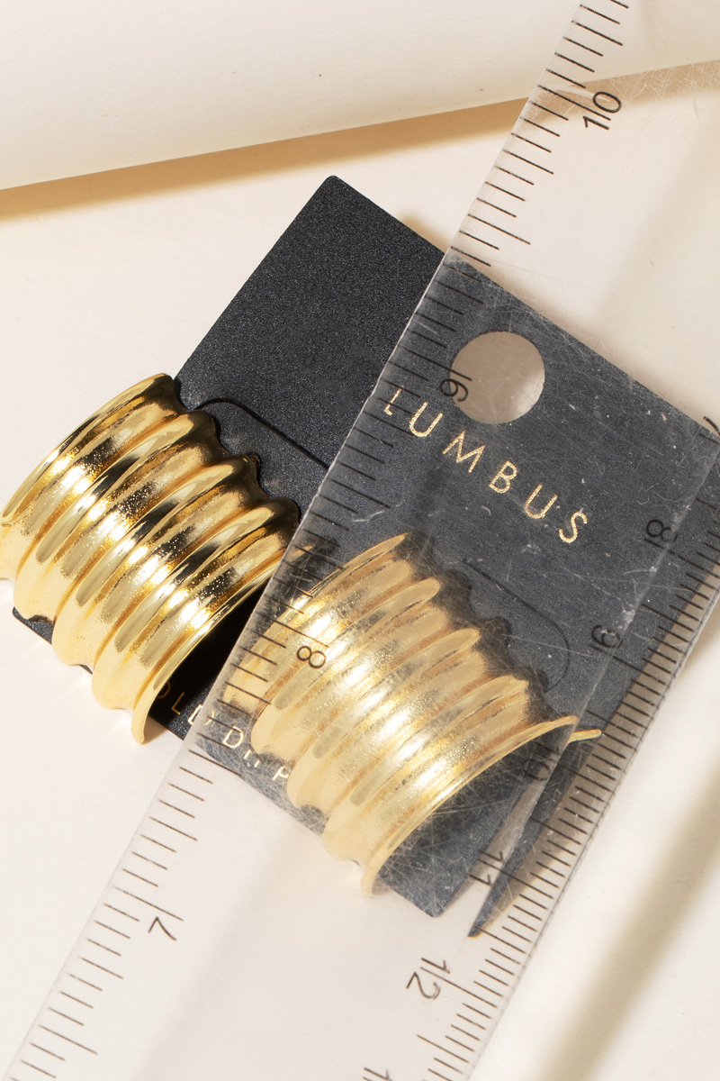 • Add a touch of elegance and glamour to your look, this pair of hoop earrings showcases a breathtaking gold dipped wide ribbed design. Upgrade your fashion game with this versatile pair of hoop earrings, a timeless addition that complements any outfit seamlessly. Available in GOLD. Columbus Jewelry. This item is sold in packs of 1.